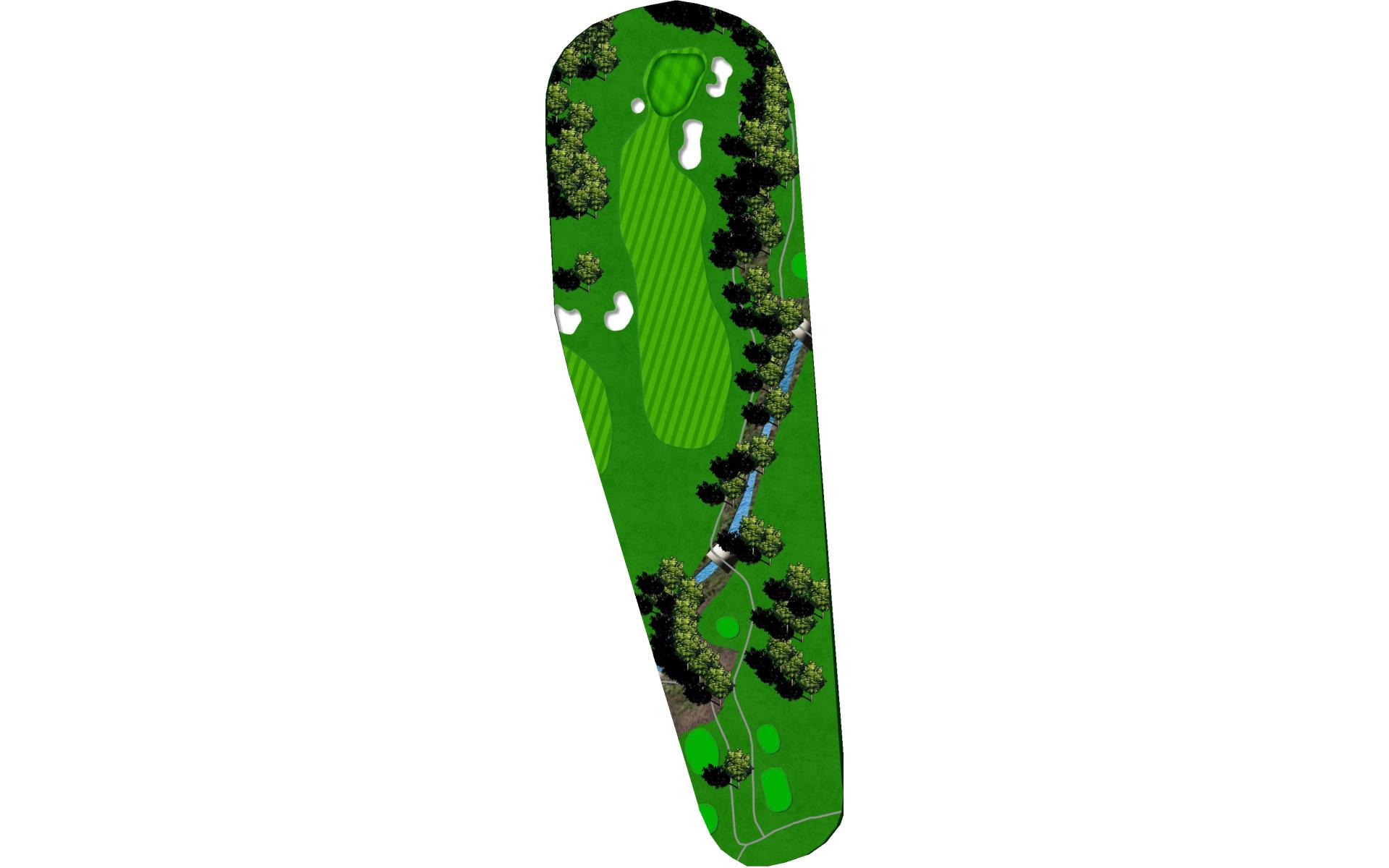 The front nine closes with the first par 5 on the golf course. Fairway bunkers focus a player’s attention to the middle of the fairway. A lay-up to about 100 yards will leave the best angle of attack to this green.