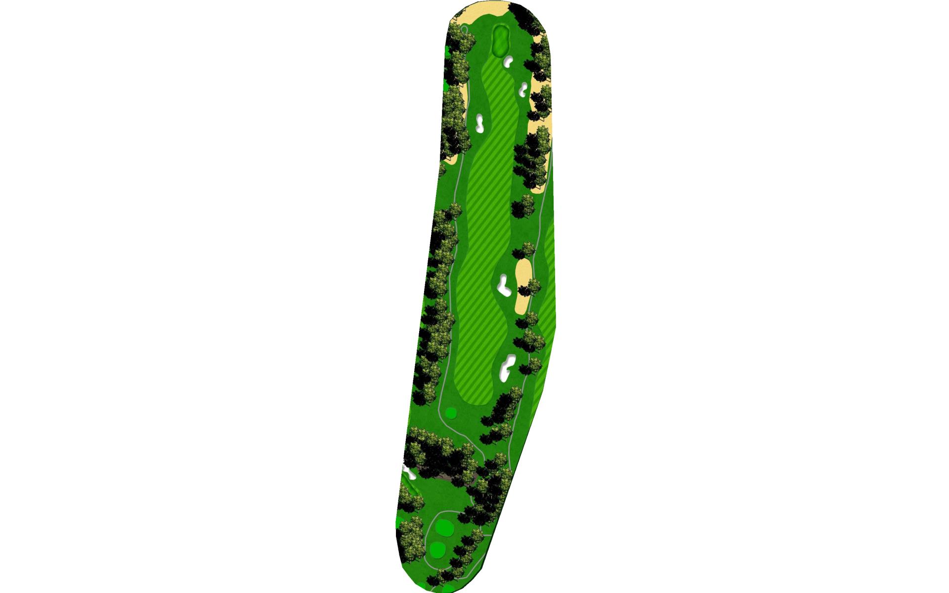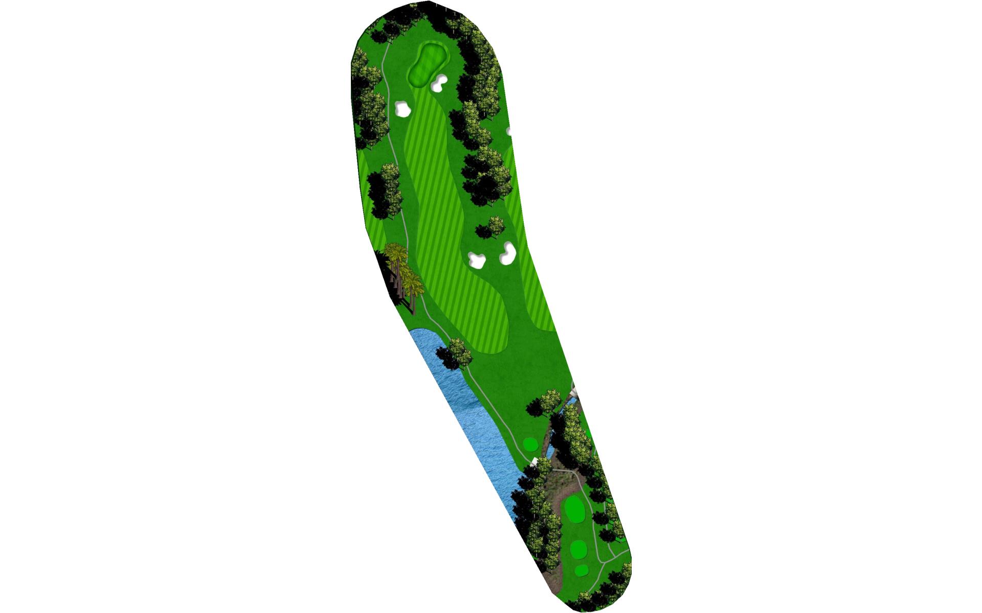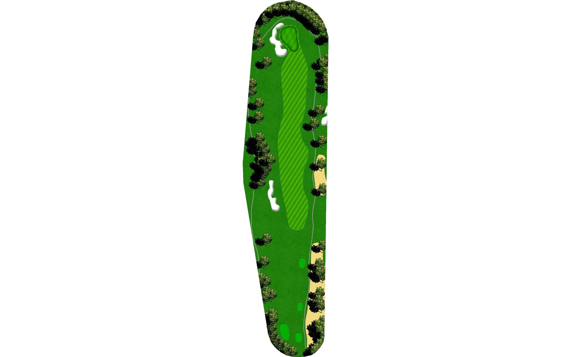 The third is a risk-reward dogleg right par 4. Some of the longer hitters may take a chance at driving the green. Bunkers guard the corner and players will want to avoid the 100+ yard bunker shot.
