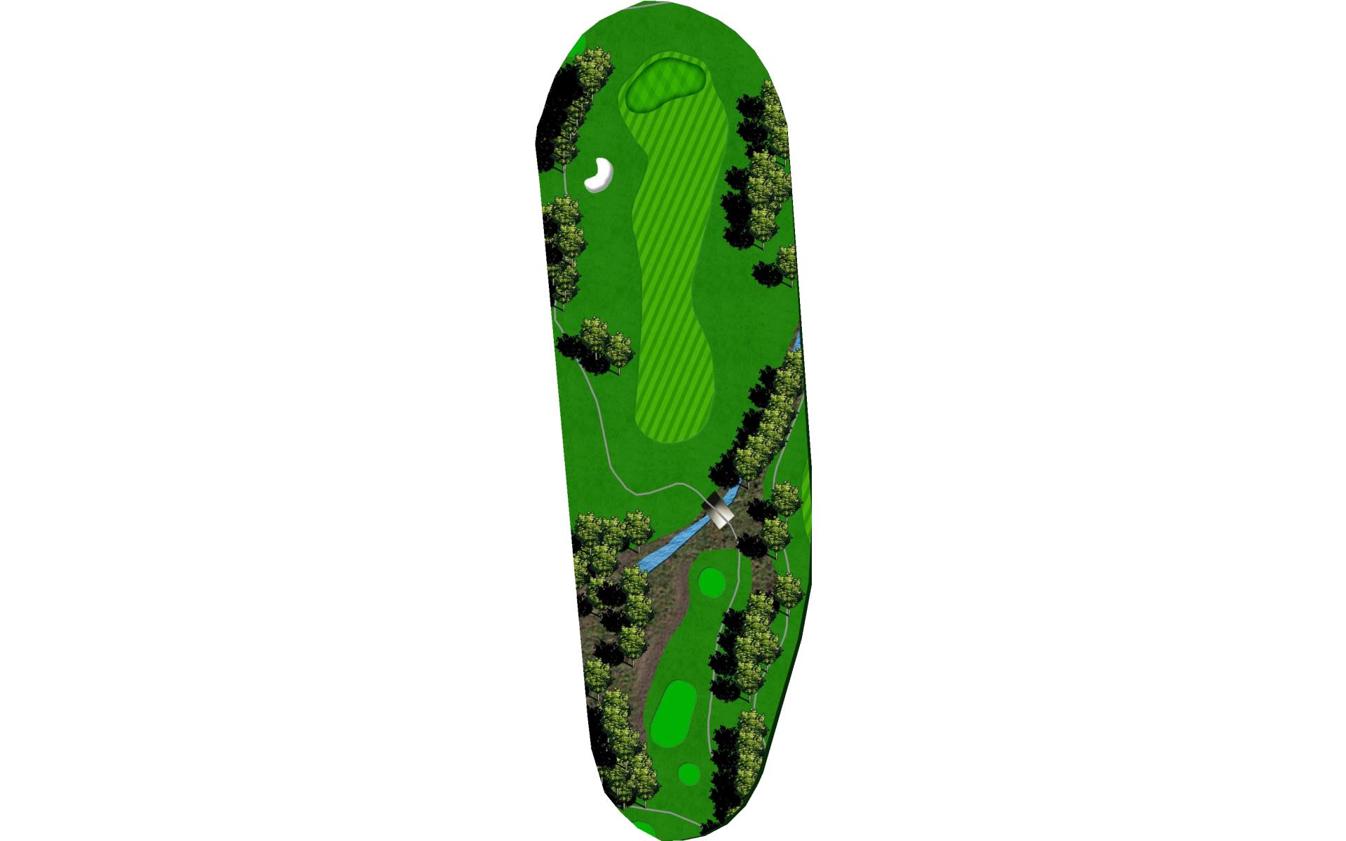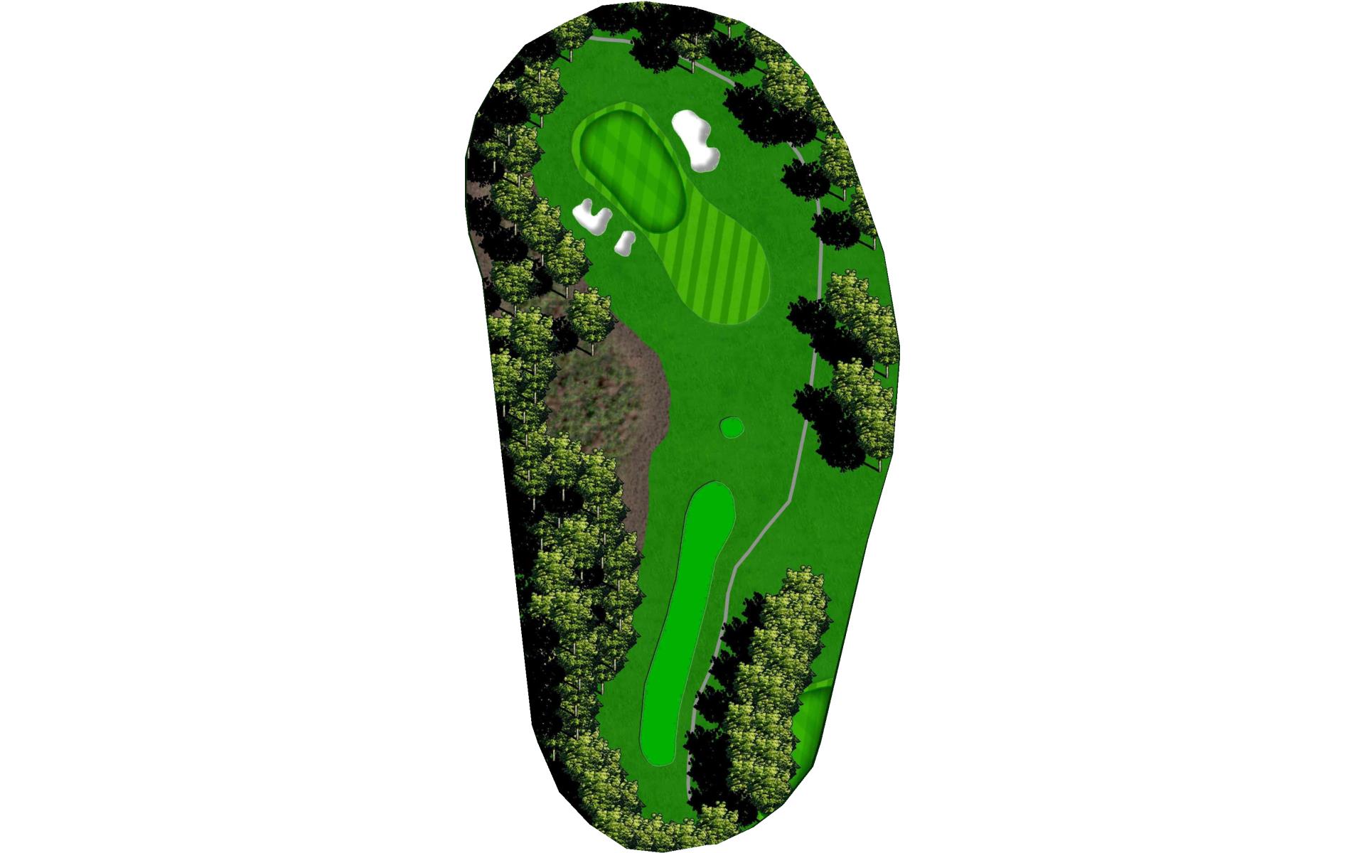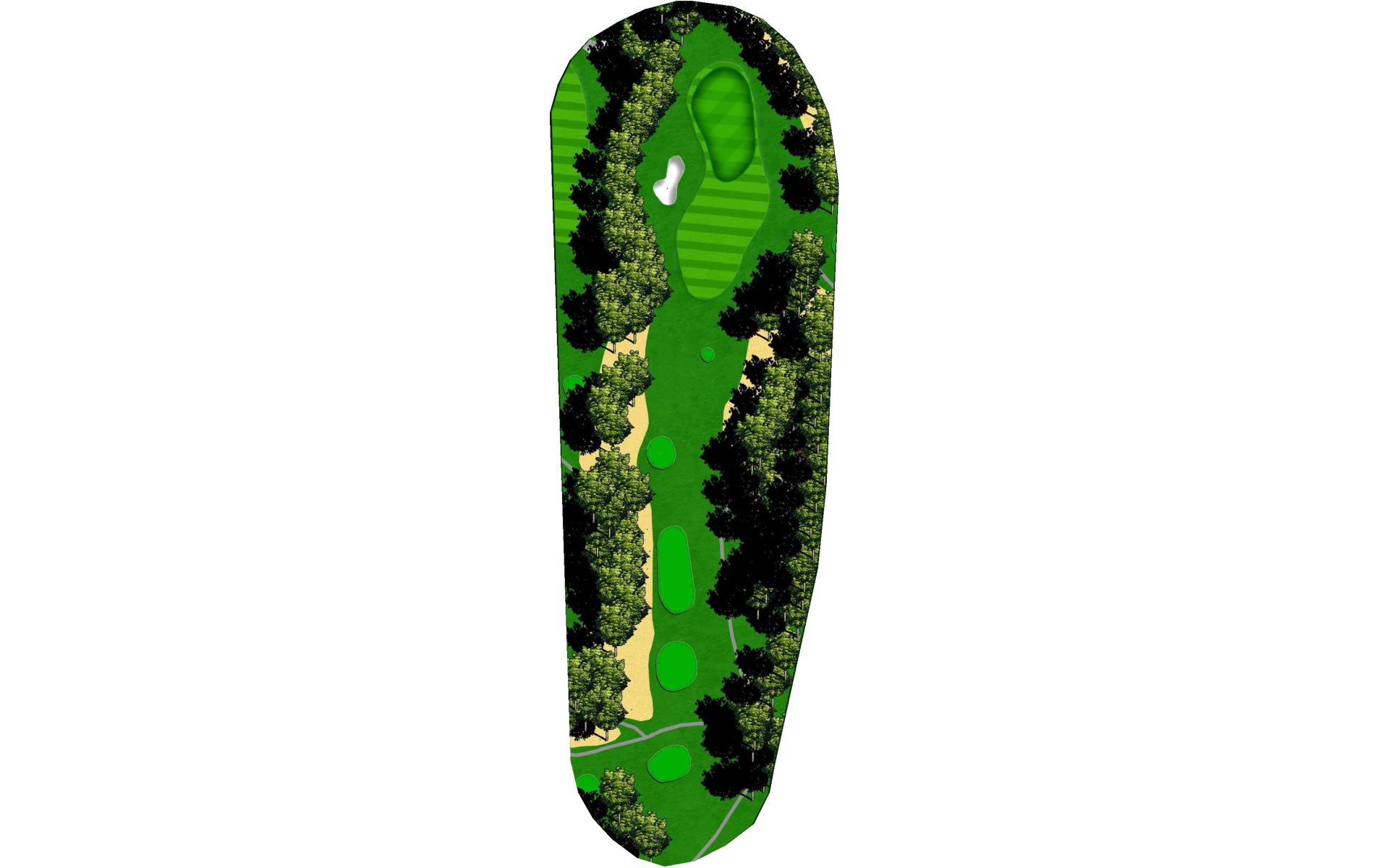 This par 5 slopes slightly uphill. The second shot slopes left-to-right, so players will want to keep their ball left to play from the center. The green is well-protected where the best miss is long and left.