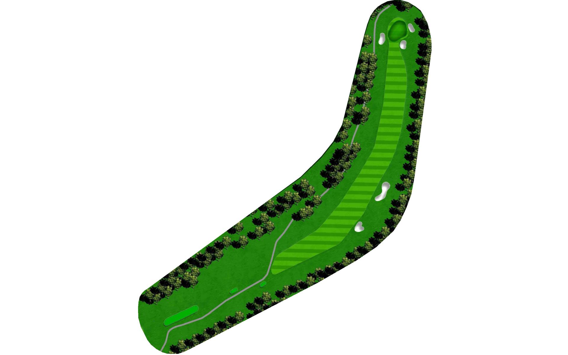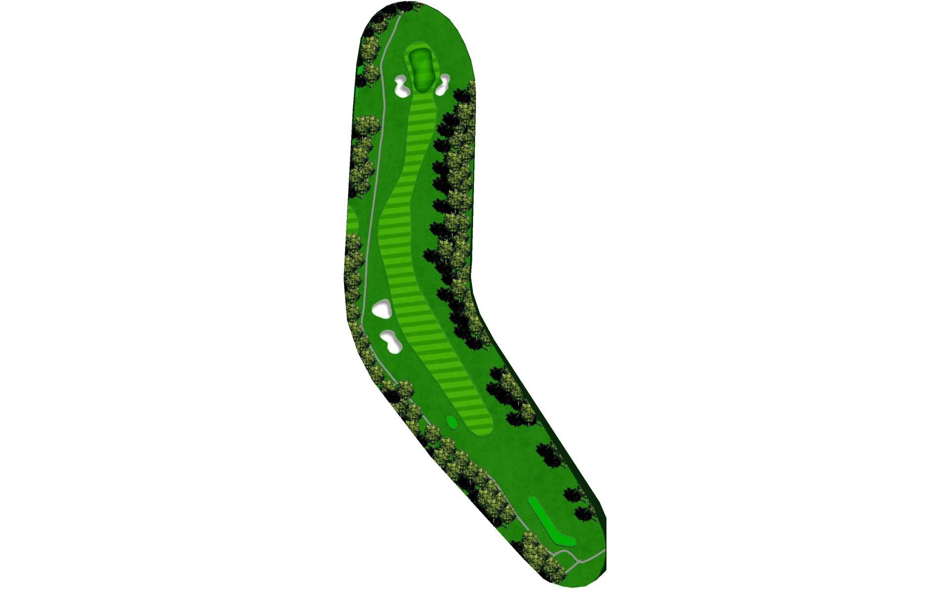A dogleg left par 5 where a draw is the preferred ball flight on the tee shot. You will not want to miss your approach left of the green as a hill makes it a challenging up and down.