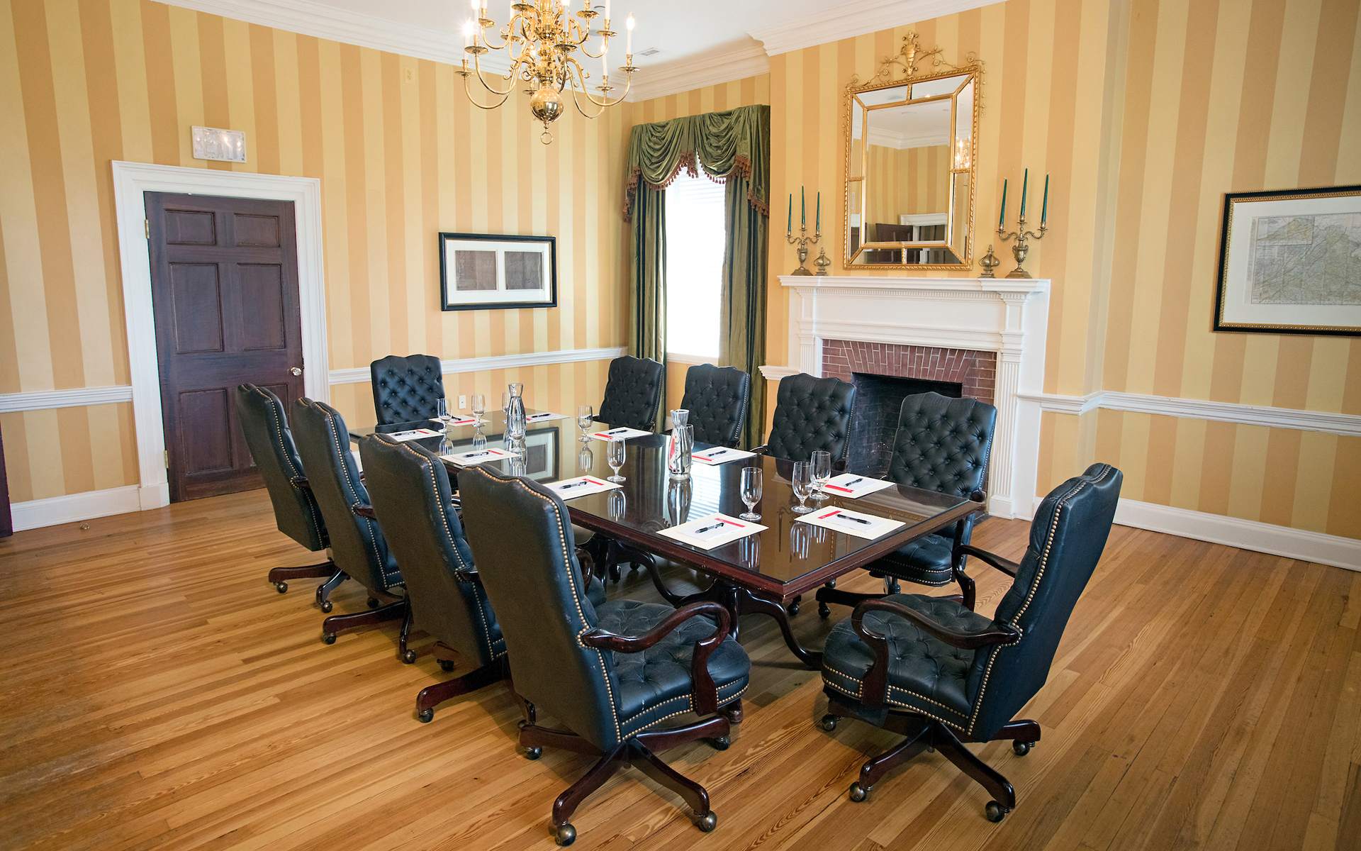 Dedicated to the McLean’s who were known for re-establishing Belmont Manor as a fine horse farm in the early 1900’s. Mr. McLean was the son of the owner and publisher of The Washington Post, and Mrs. McLean owned the hope diamond, which she was said to regularly wear around the mansion, as if it were a common piece of jewelry. The McLean Room today offers a Boardroom style conference table.