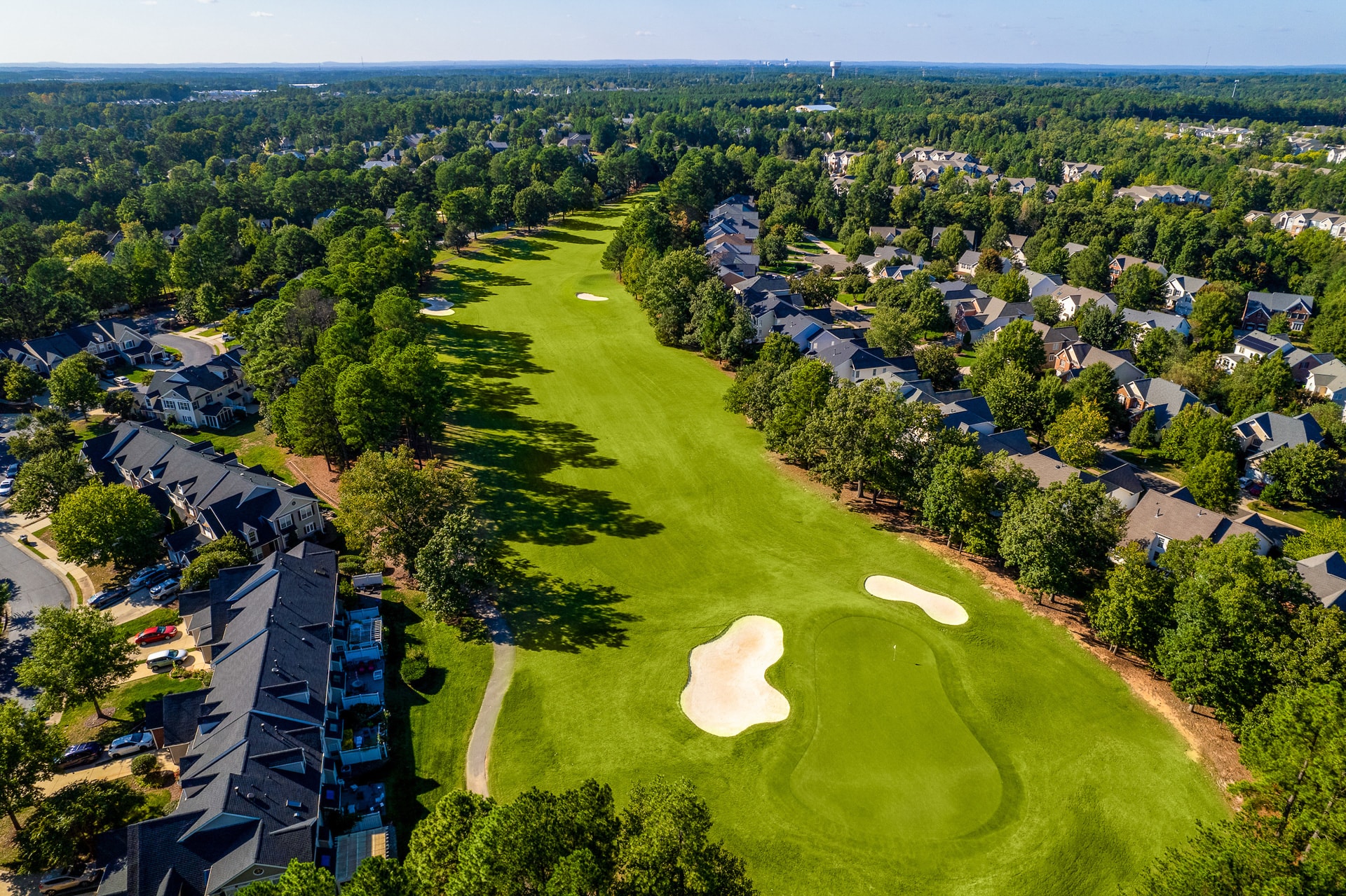 This signature par four is a perfect way to end your round. A well-placed drive will tempt players to test their skills in negotiating this intimidating green setting. Surrounded by water on three sides and bordered by the Carolina ledgestone retaining wall, players may elect to play safe to the left.