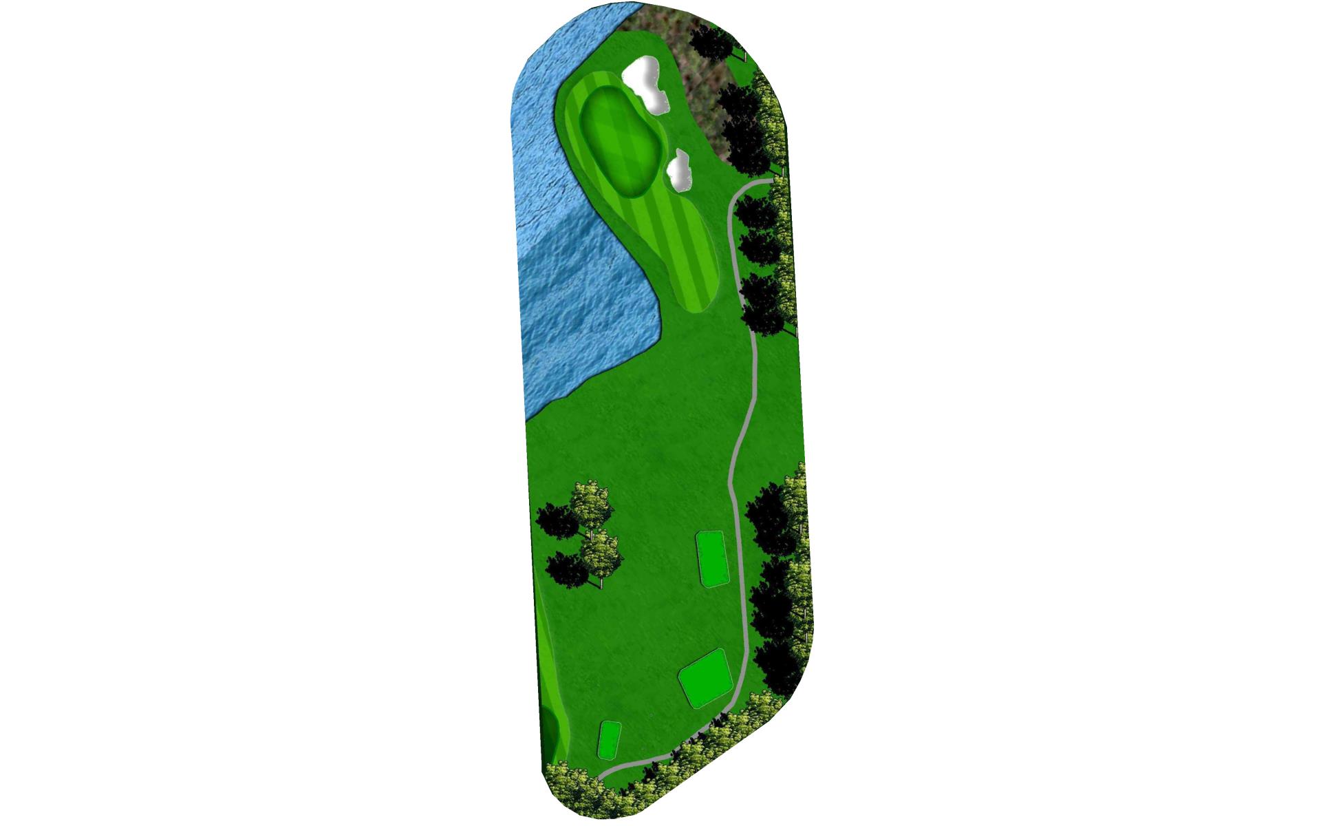 A good test, this long par 3 is over water and surrounded by bunkers.