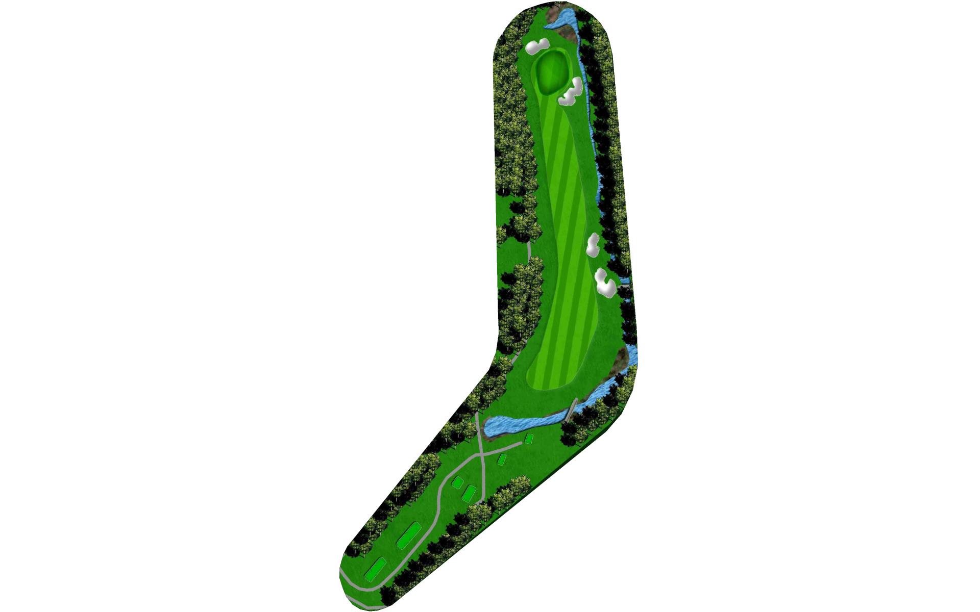 Your second shot can be tough depending on the final resting place from your drive. It can be a blind and long approach with your second shot, but stay left since a hazard runs right.