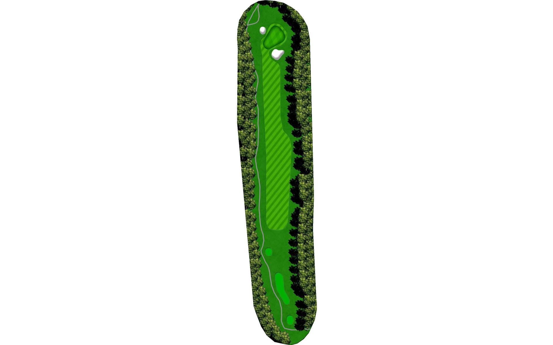 The opening hole is a straightaway par 4 that’s framed by out-of-bounds on both the left and right. A bunker guards the front-left of the putting surface.