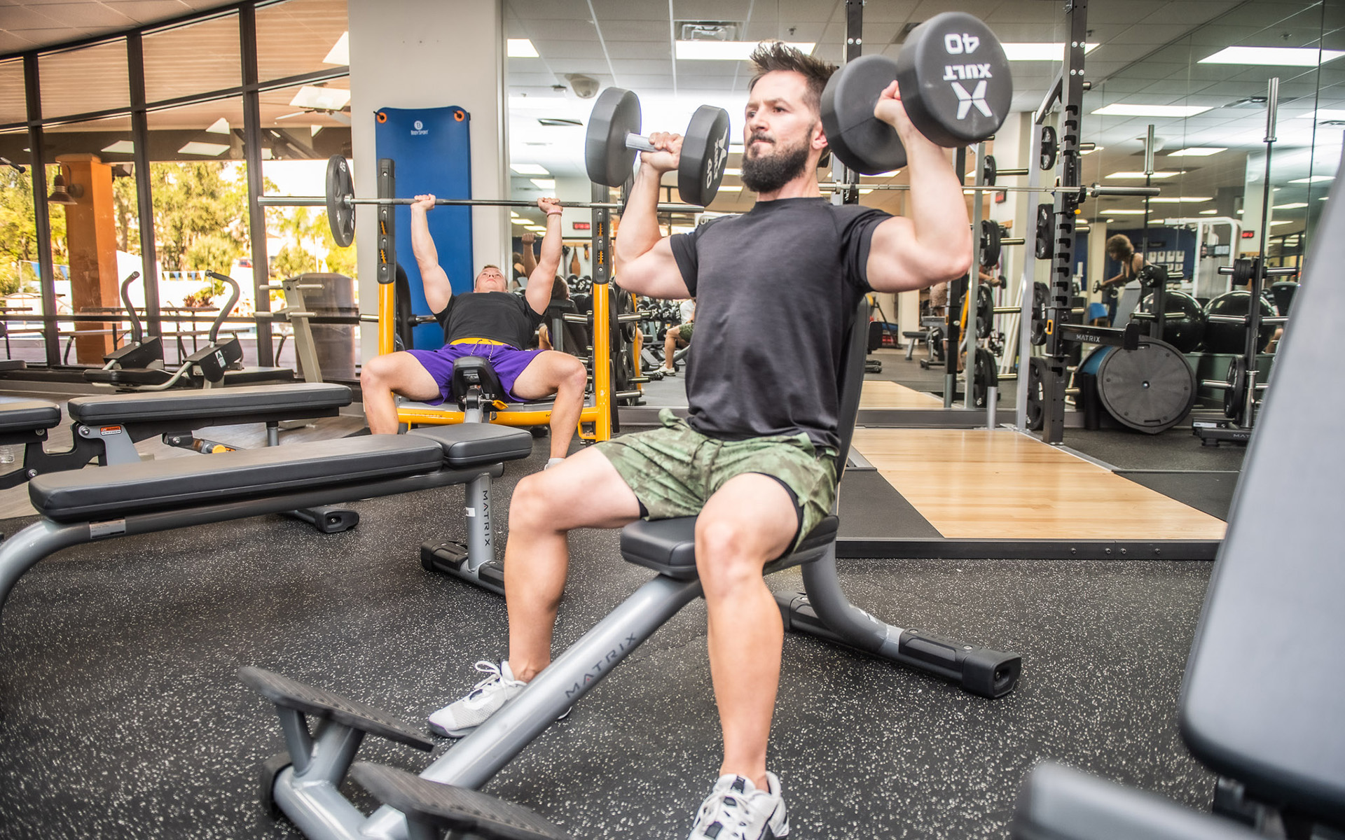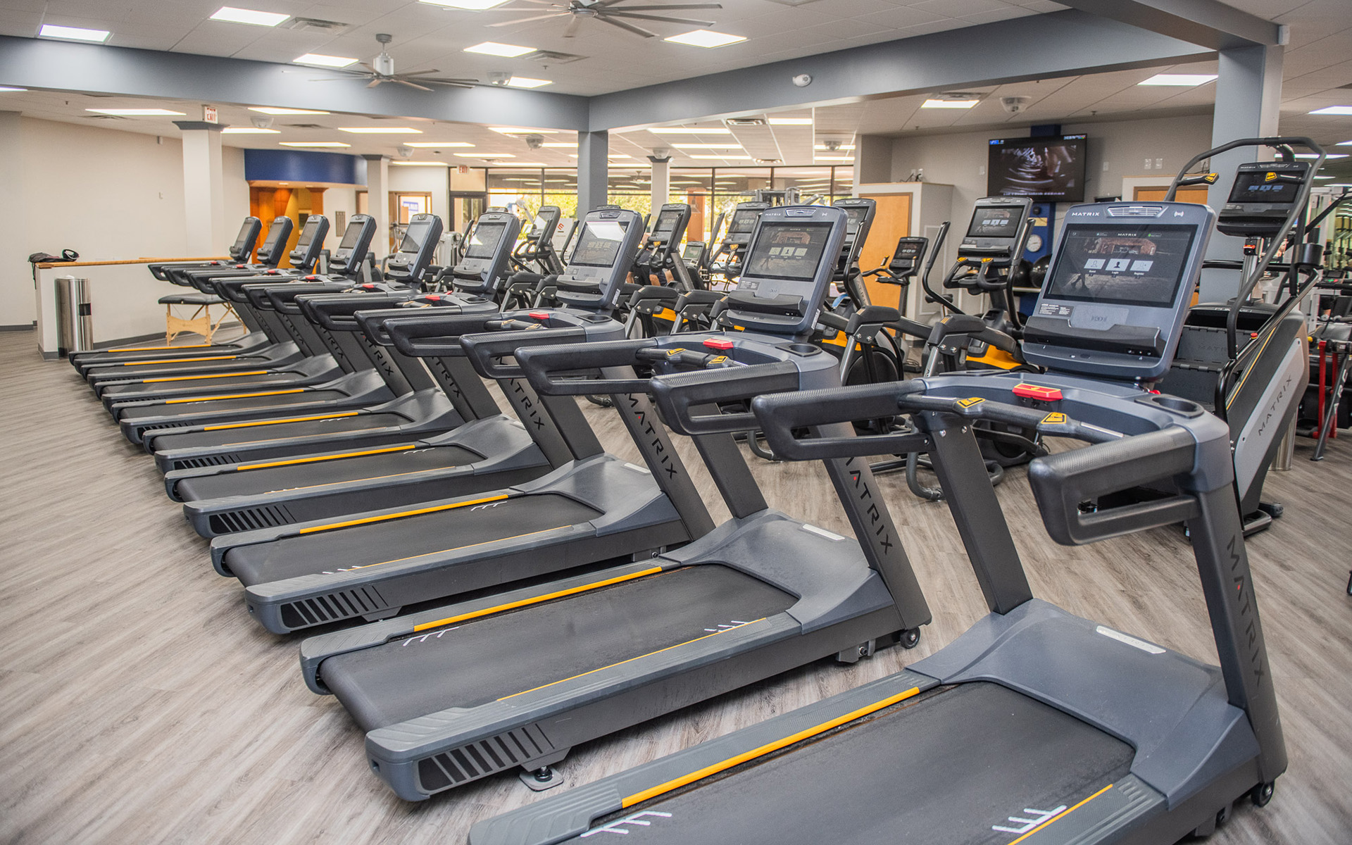 - State-of-the-art equipment to include: Matrix treadmills, upright and recumbent bicycles, Ellipticals, Step Mill, Techno Gym resistant weight machines, Squat Rack Platform, free weight benches, plates & bells