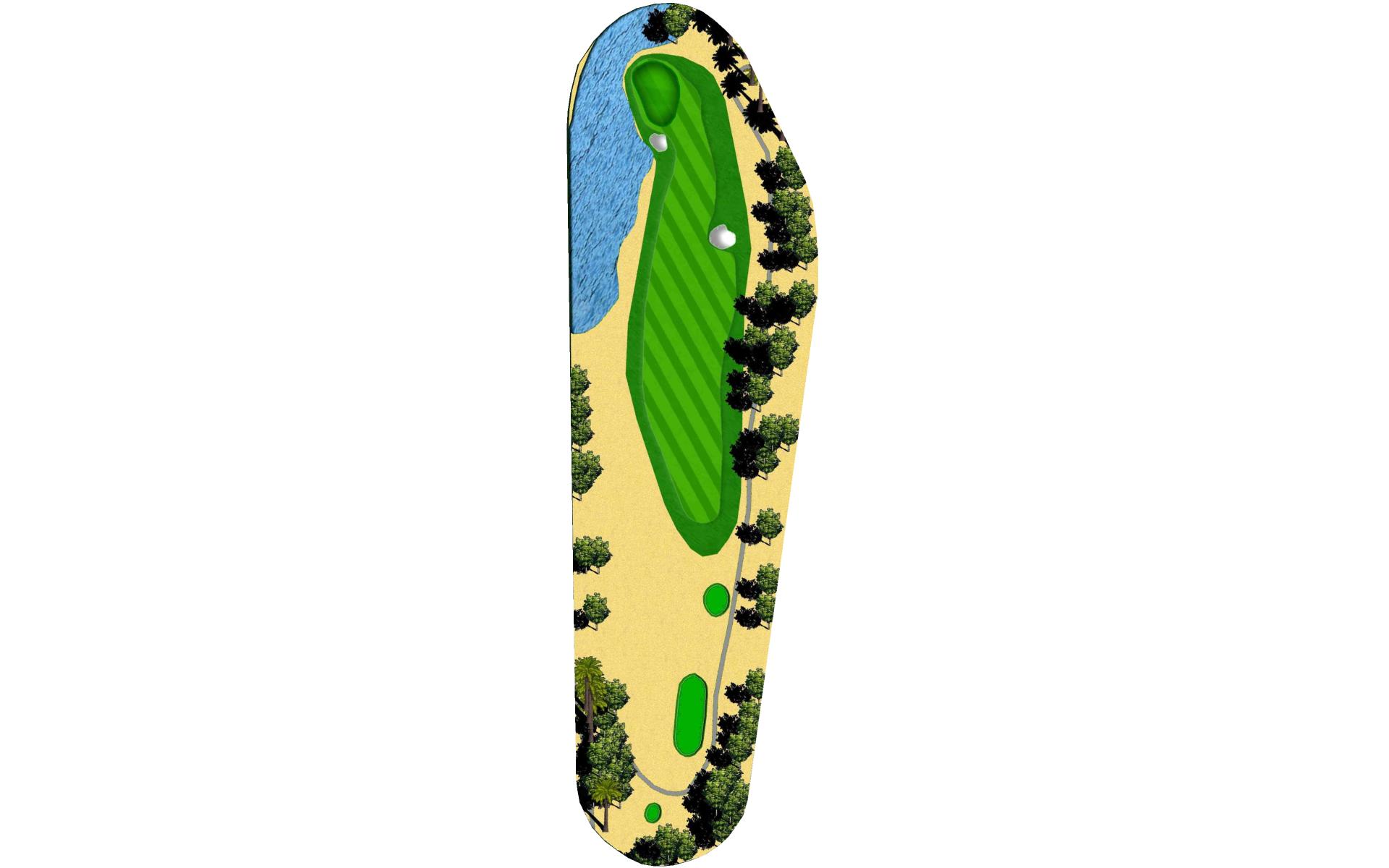 Par 3 over a pond- the hole will play approximately 140 yards from our men’s tee and 110 yards from our ladies tee. The putting green is guarded by two bunkers- short left and right of the putting green. Putting Green runs back to front and left to right. *Player Note: there is more room over the short left greenside bunker than you think. Middle of the green is always a great spot to putt from on this hole for any pin position.