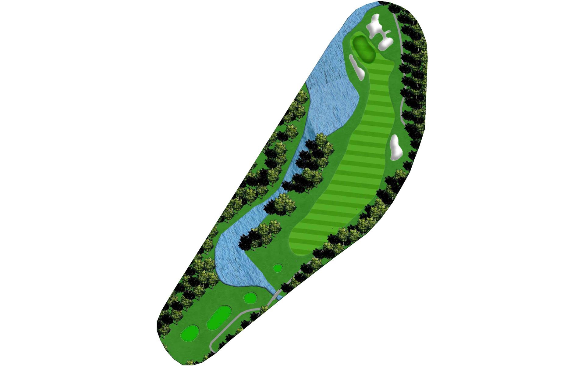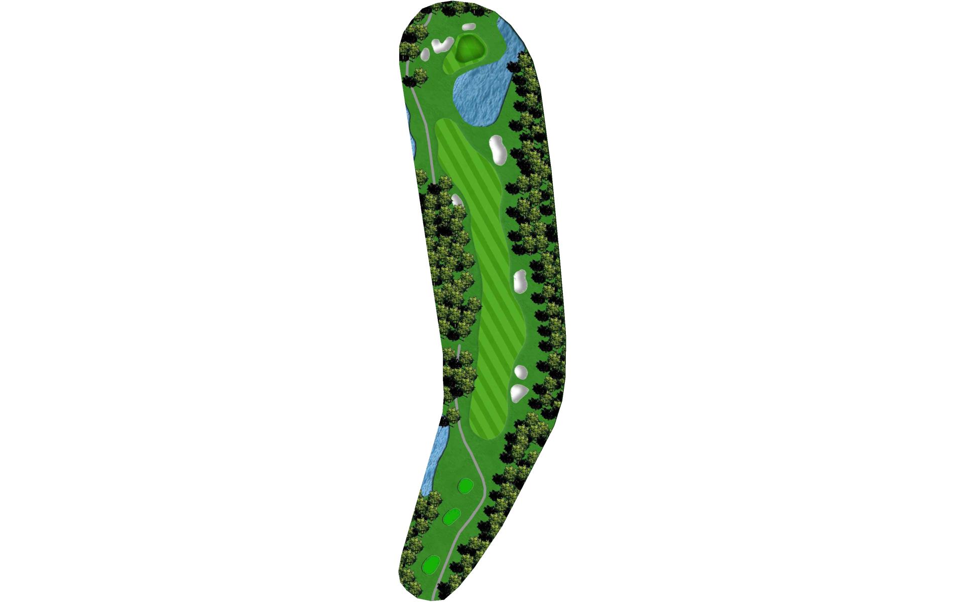 A demanding and intimidating straightaway par 4 with OB left and water on the right. The fairway is roomier than it may appear so let go of the steering wheel and let her rip.