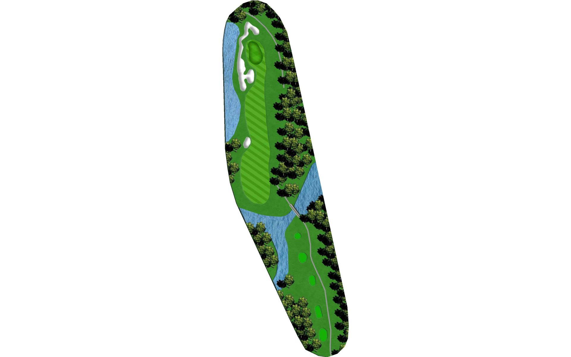 The last par three on the course has a deep bunker right in front. Aim a bit left of the flag and be sure to hit enough club. No problem missing the green to the left as it's a pretty easy up and down, but don't miss it to the right.