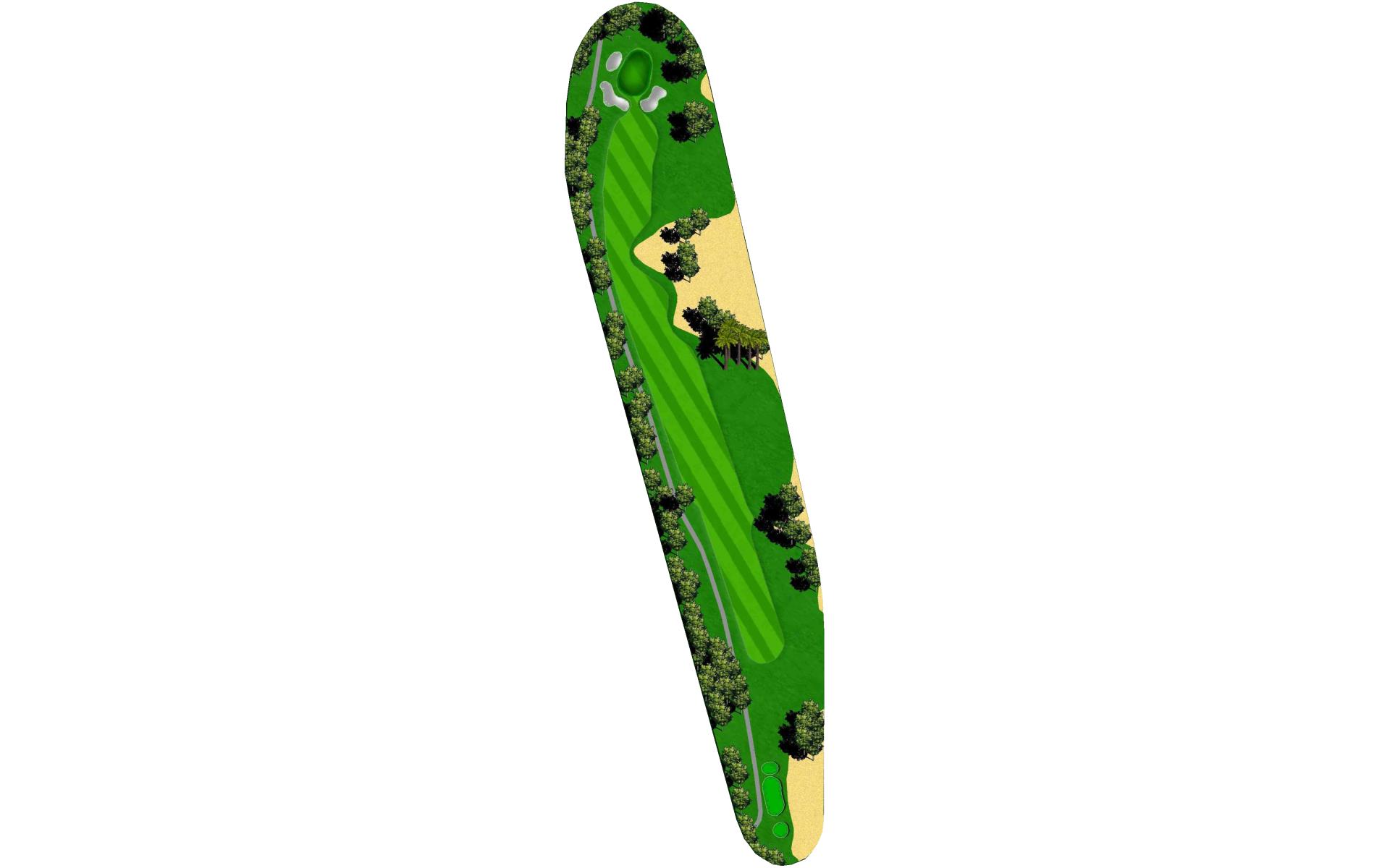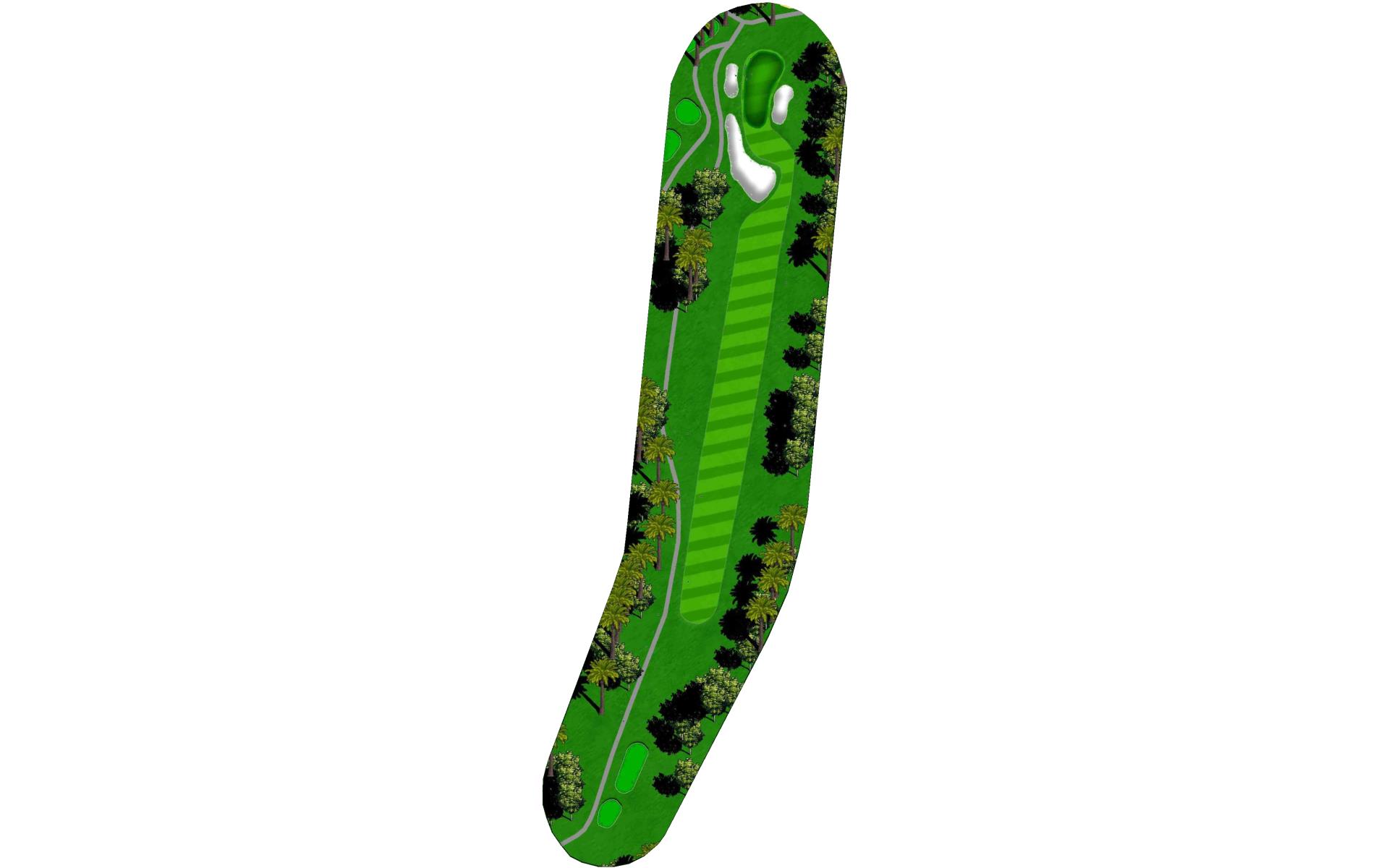 Short par 4 with a narrow fairway - trouble and wash on the left - bunkers right but scoreable from the fairway.