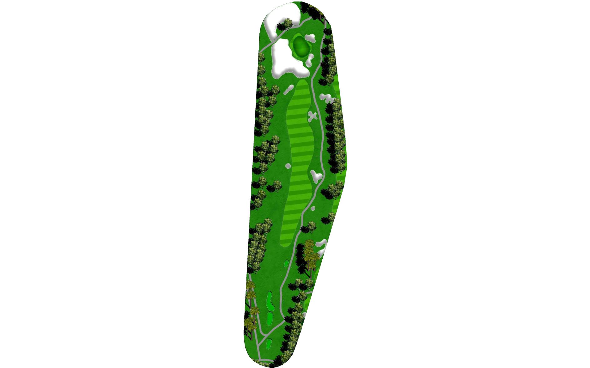 A long iron or 3 wood won't hurt here (bowling alleys are wider than this palm tree-lined fairway!). Stay short of the water and your third shot will find the green without a problem.
