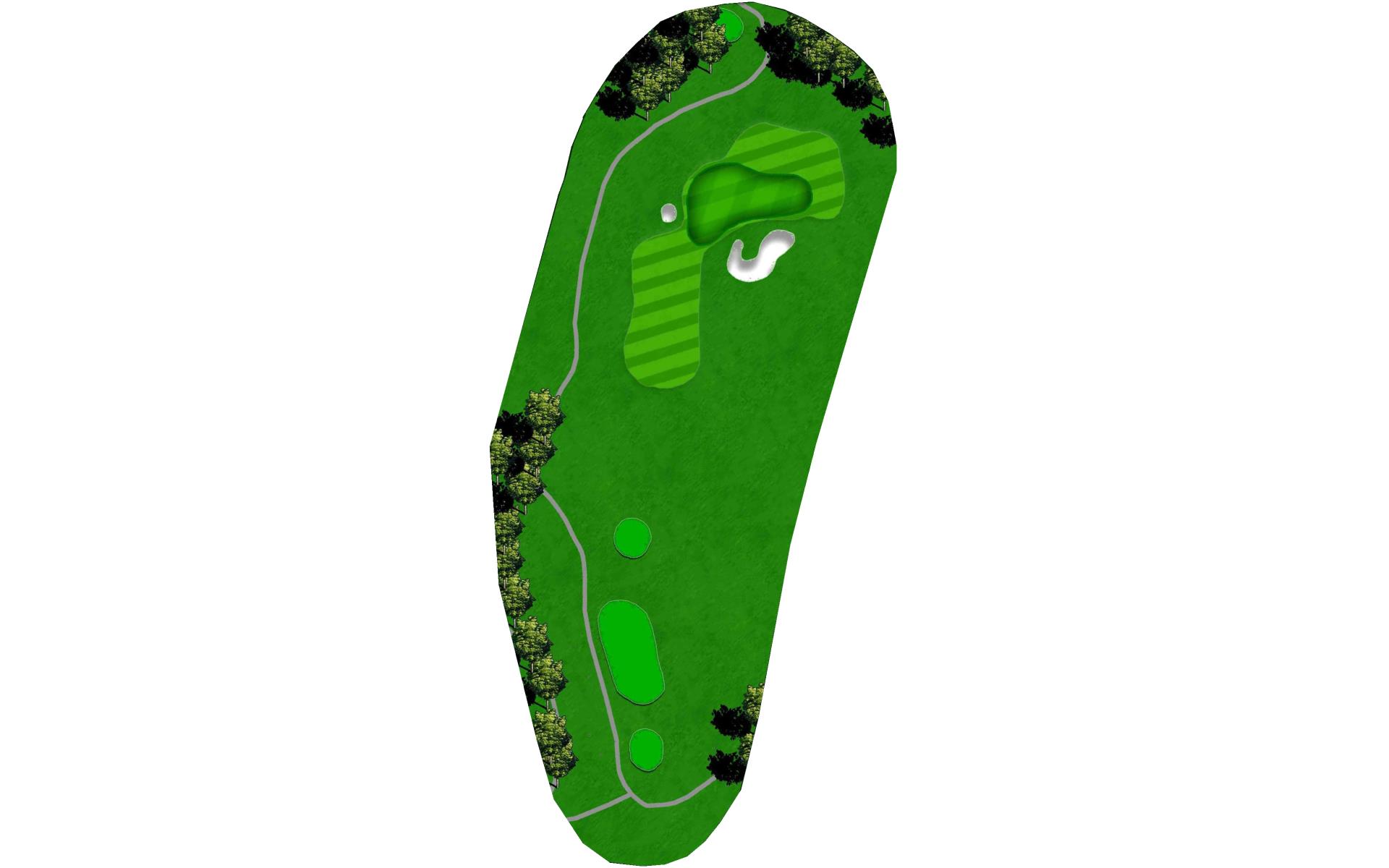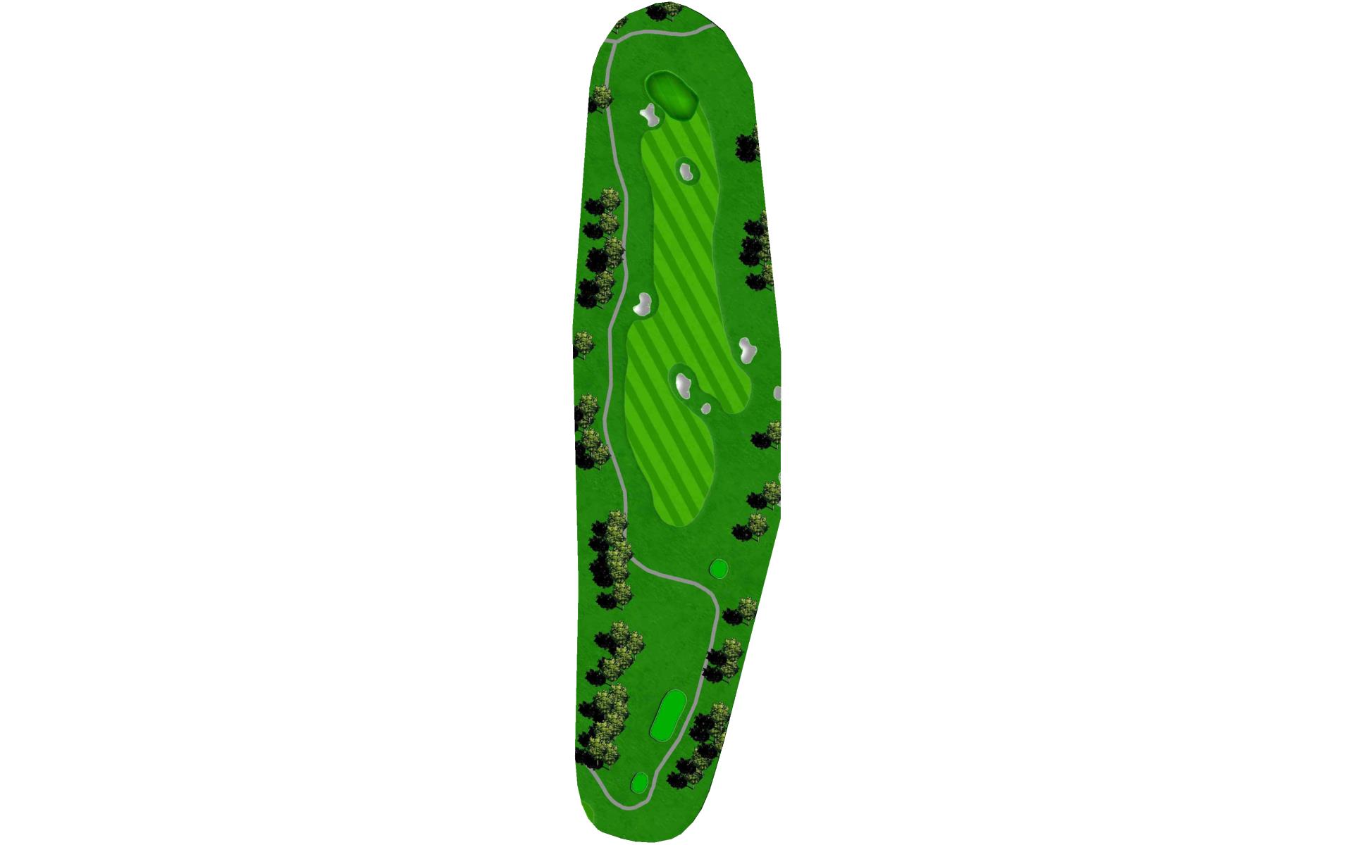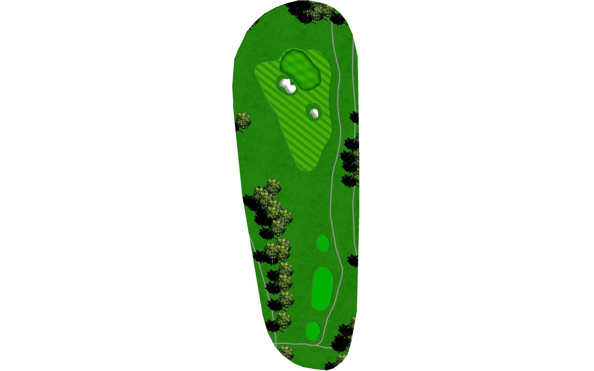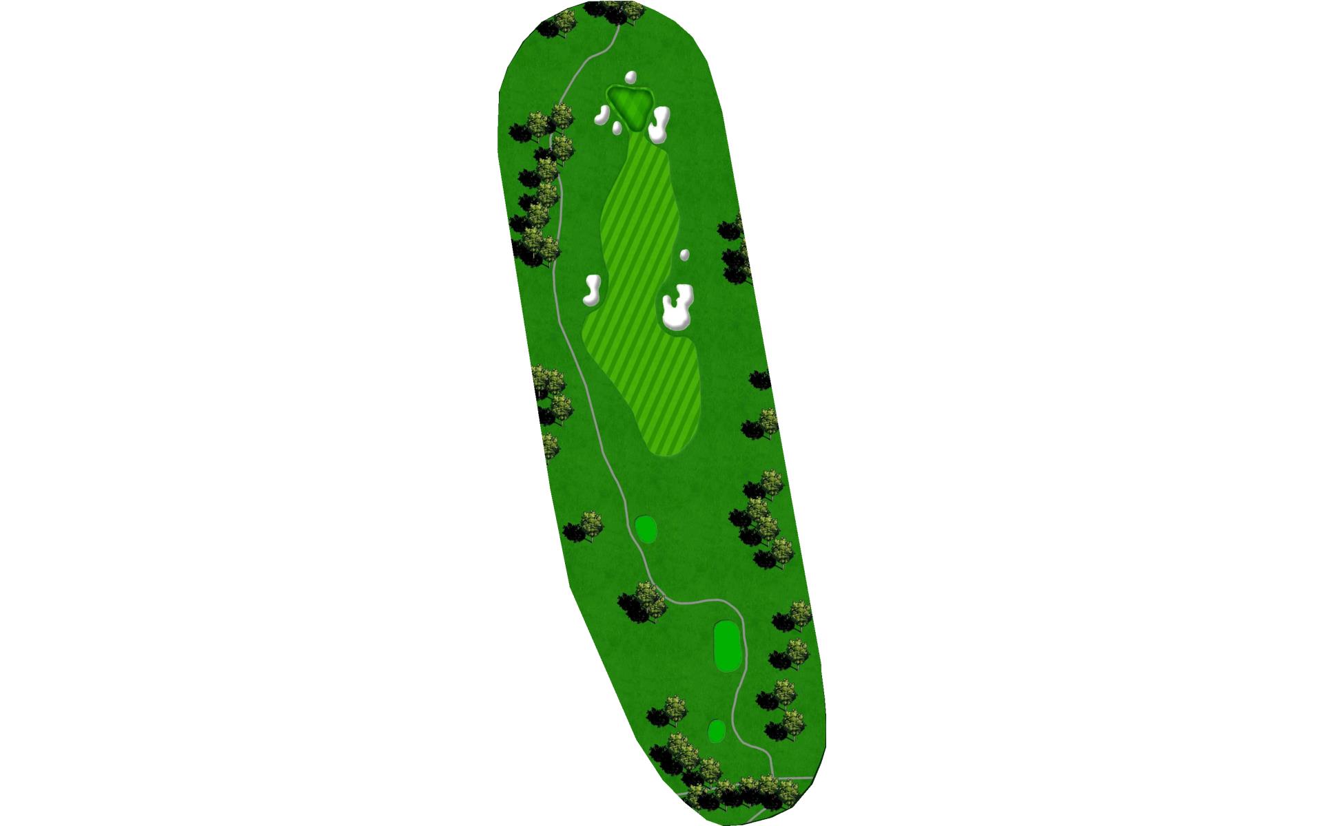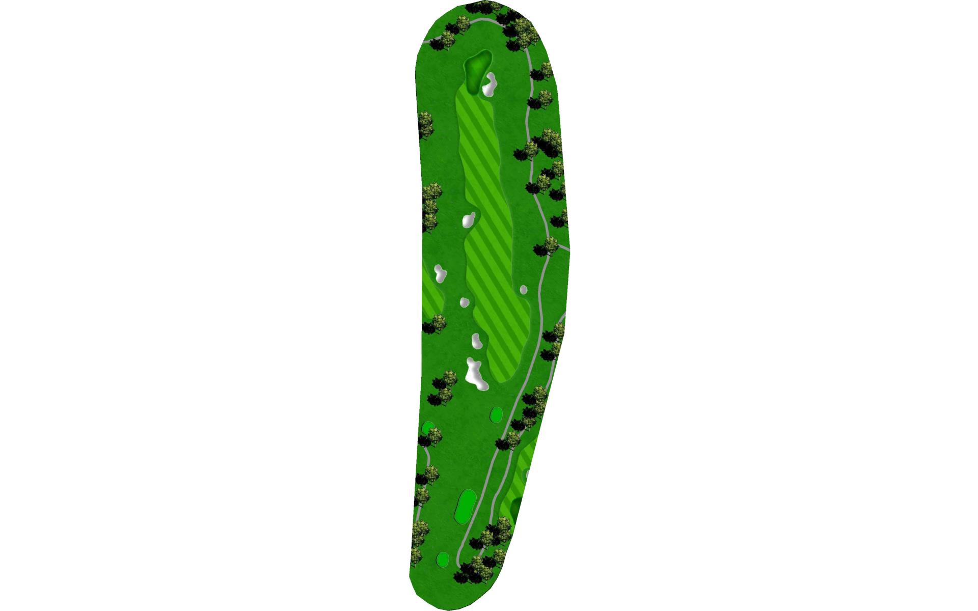 The first par 5 on the golf course is a long, tough test, where the best strategy is to hug the left side of the fairway the whole way. The drive will have to carry a short, small water hazard and the fairway bunkers left of the landing area. The second will, again, need to miss a larger fairway bunker on the left. The final stretch is peppered with bunkers on both sides on its way to a green that slopes away from the strong landform on the front-right.