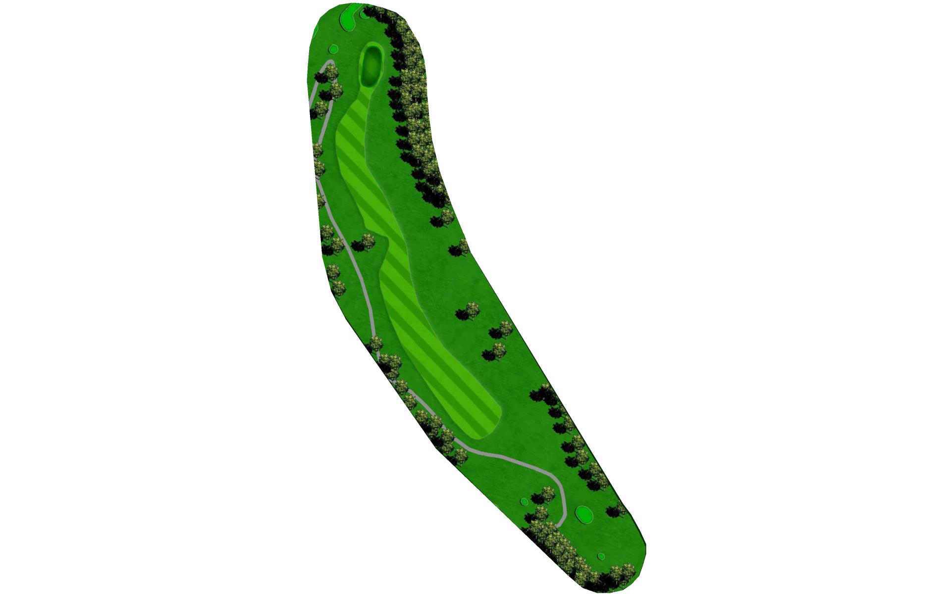 This tree-lined par 5 is reachable in two by long hitters. Players will want to keep the ball between the trees in order to have a shot at par or better.
