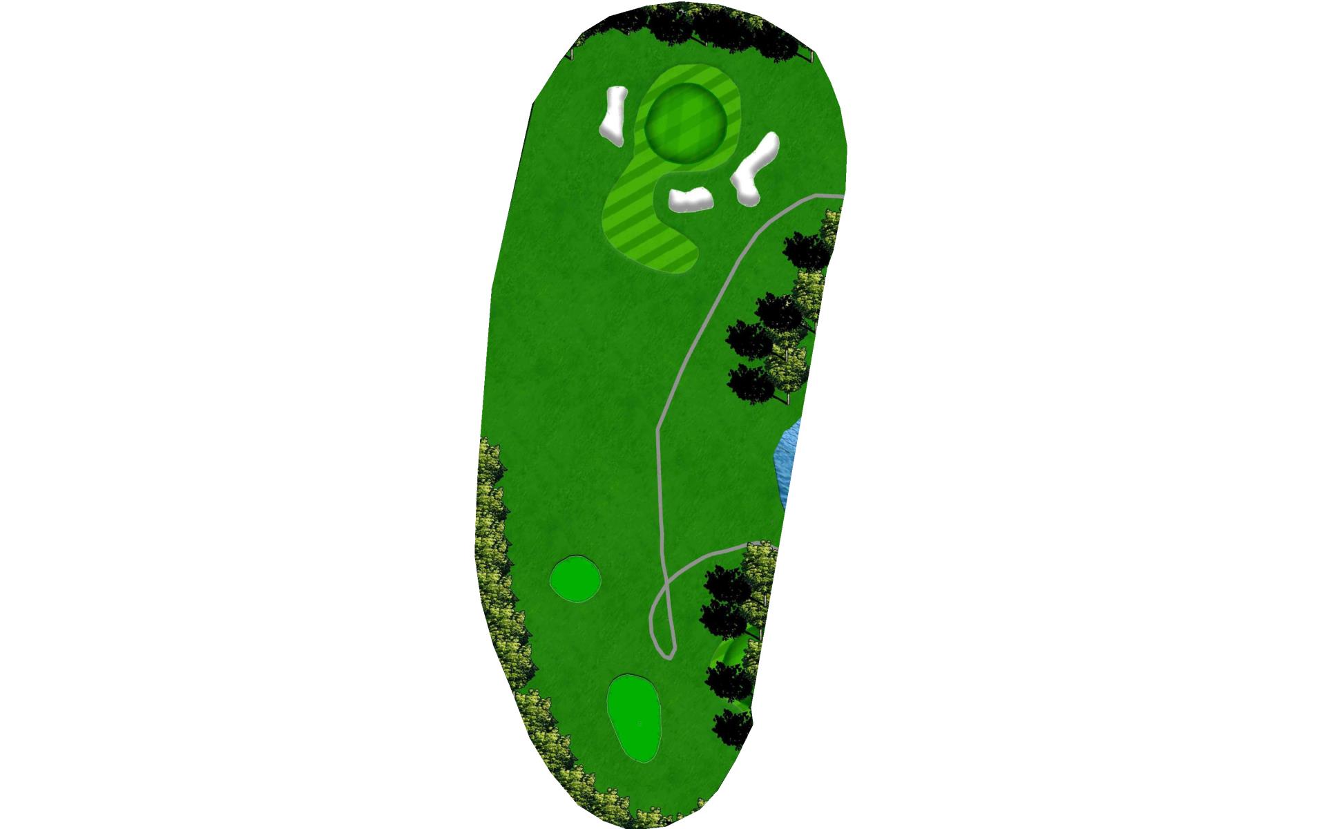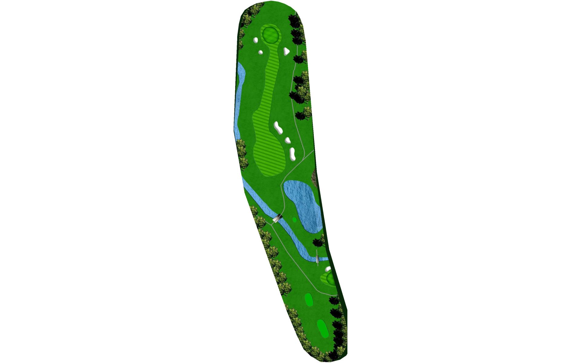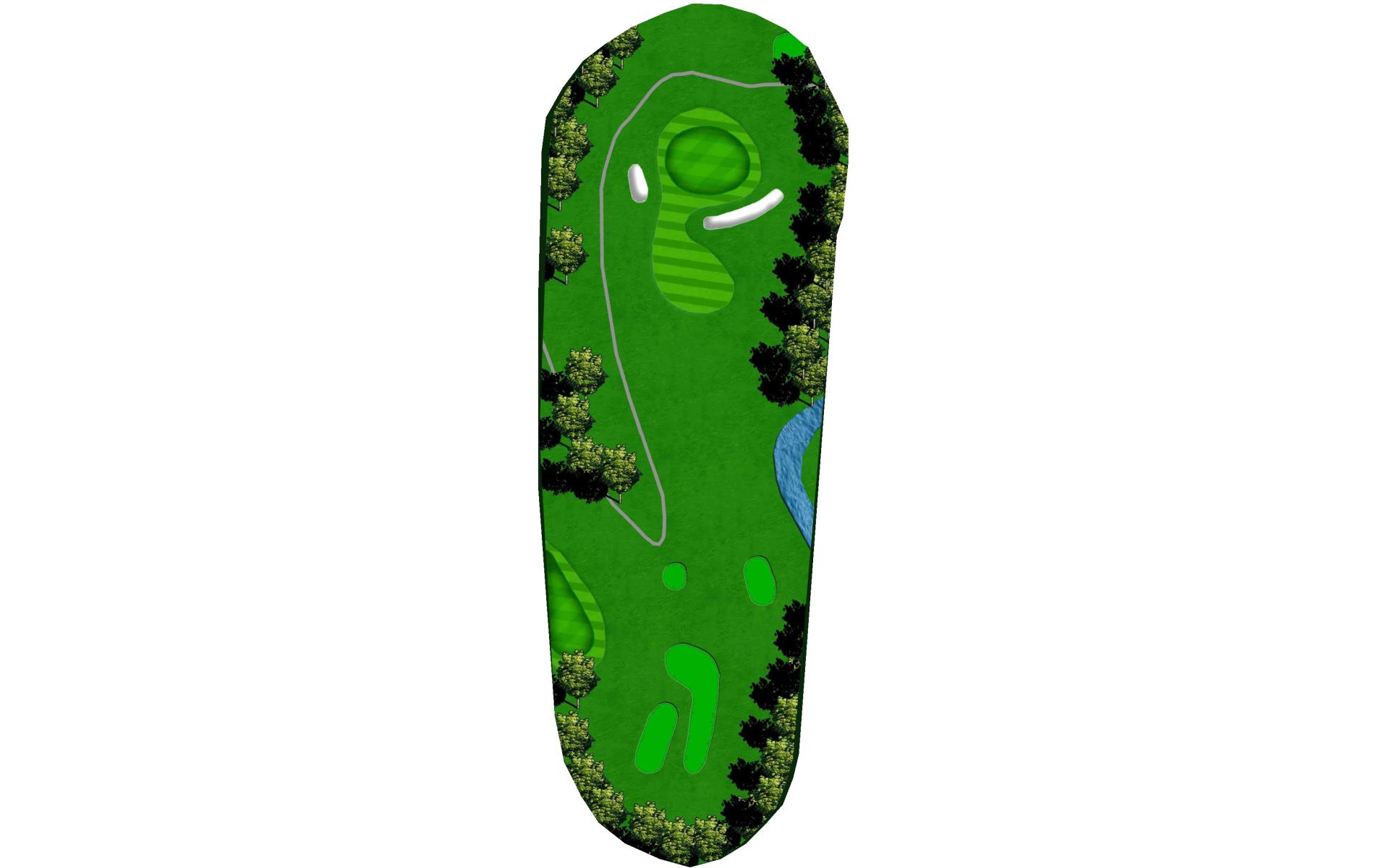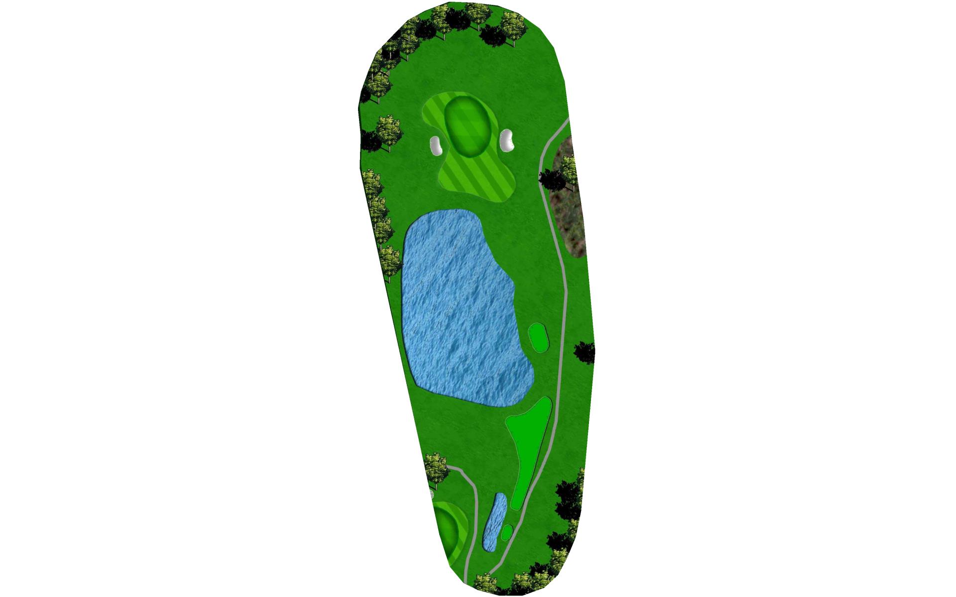 This par 4 is the shortest on the golf course, which provides longer players an opportunity to hit the green in one. The undulated putting surface is protected on the left by a large bunker.