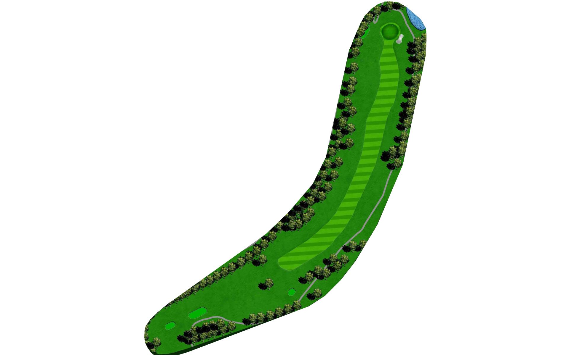 The final hole on the front nine is a straightaway par 4 with out-of-bounds down the left. A “speed slot,” which can dramatically shorten the hole, can be found by drives down the right side.