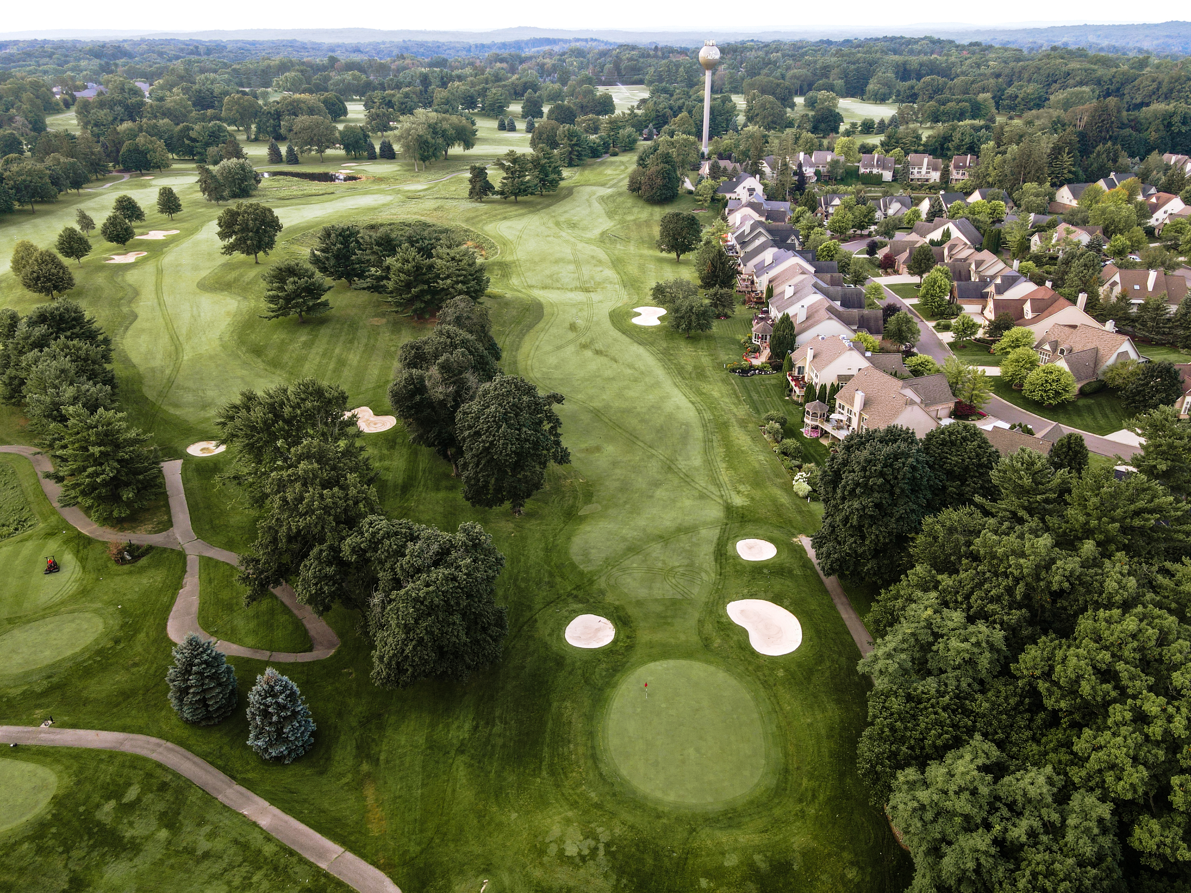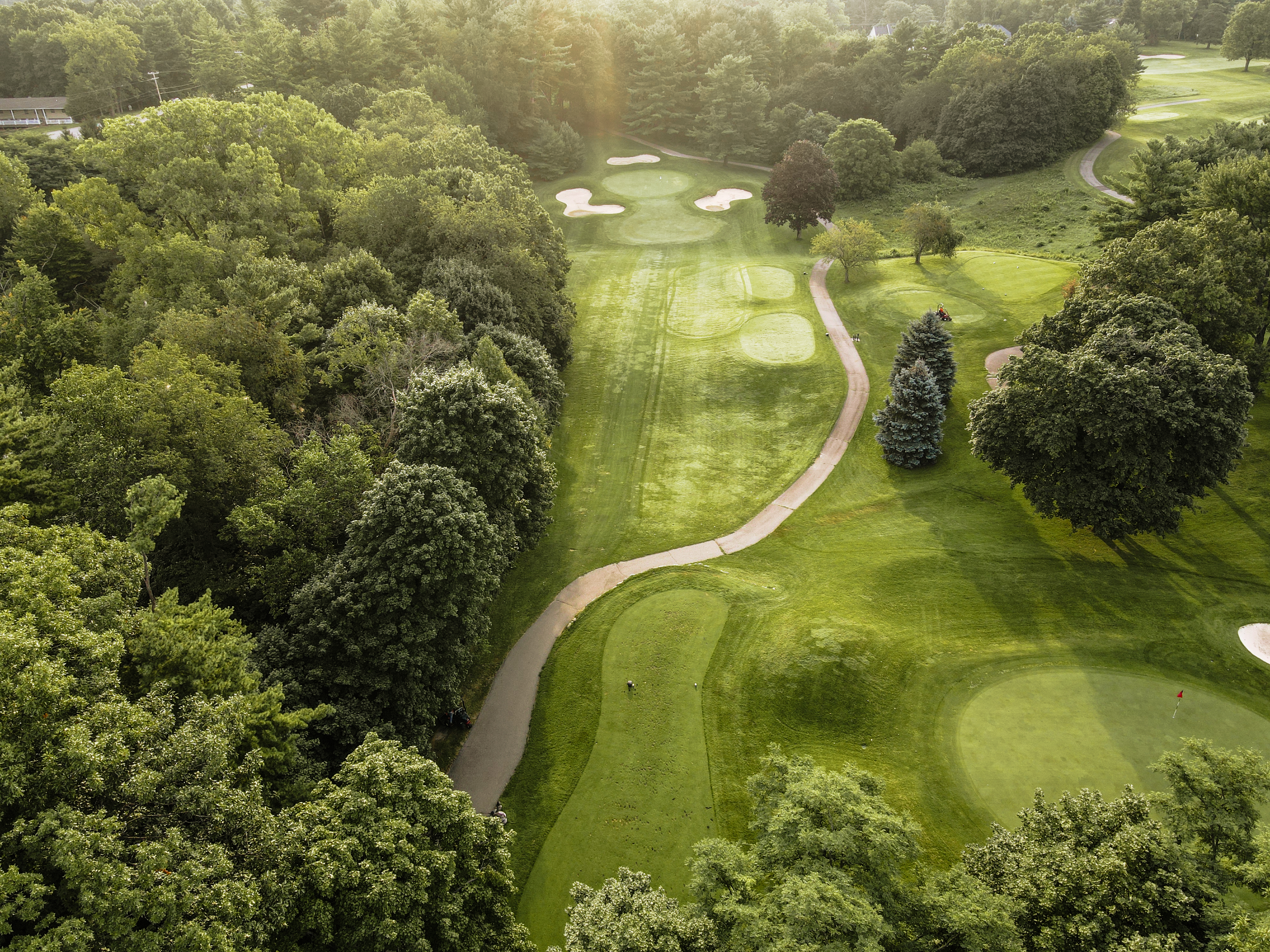 Is the longest Par 4 on the front nine. An accurate tee shot will avoid the trees on both sides of the fairway. A drive aimed a few yards right of the left side fairway trap sets you up for a good approach shot. The green is protected by sand traps on the left side and mounding on the right side. Once on the green the player will need to manage putts that can have significant break.