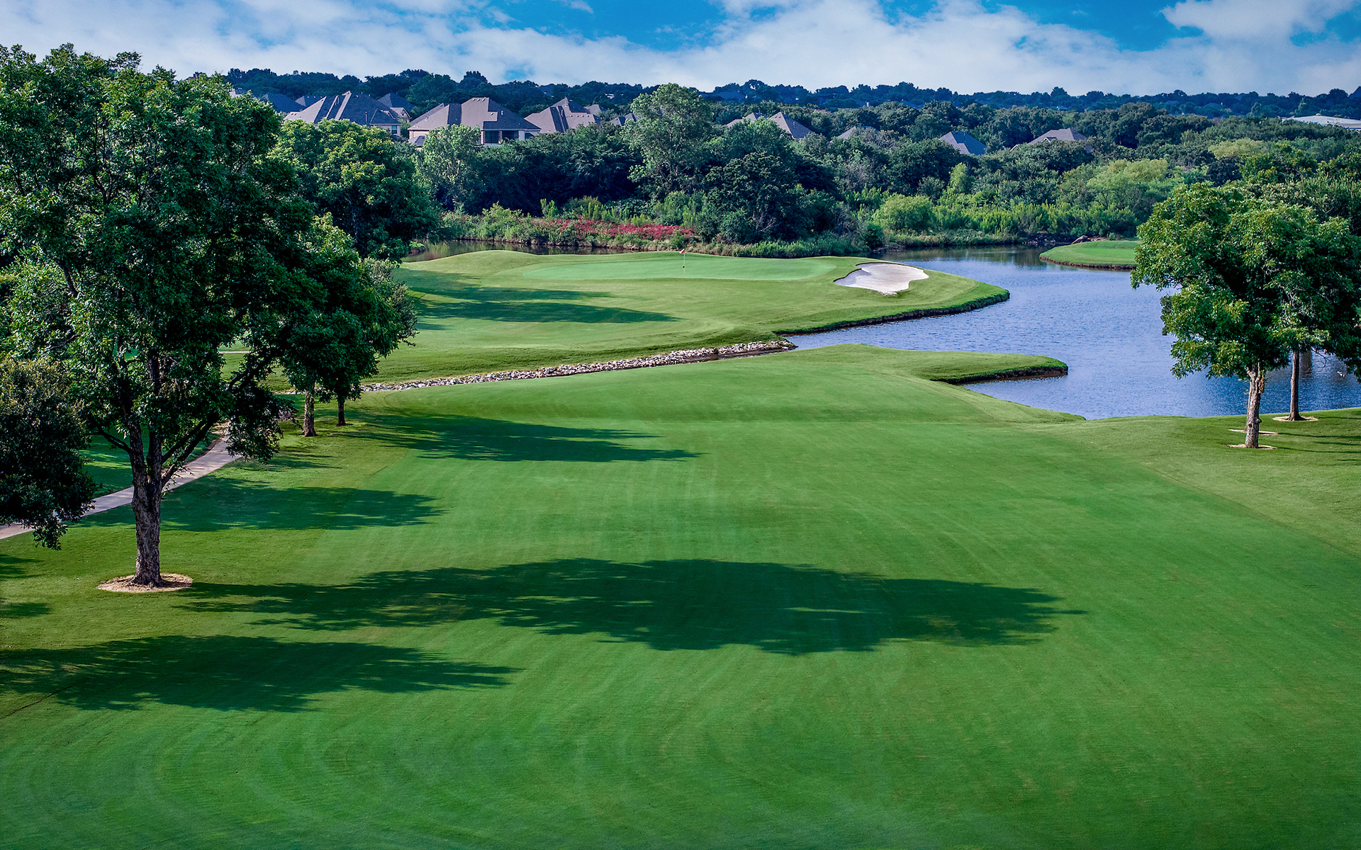 This Tee Shot is one of the highest points in Denton County. After hitting your tee shot, longer players can have a go at this green in two. The perfect layyup wound be more on the right side of the fairway to ensure a great angle into the green.