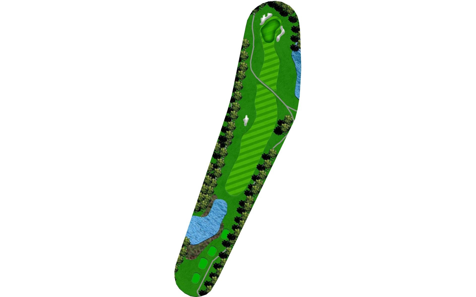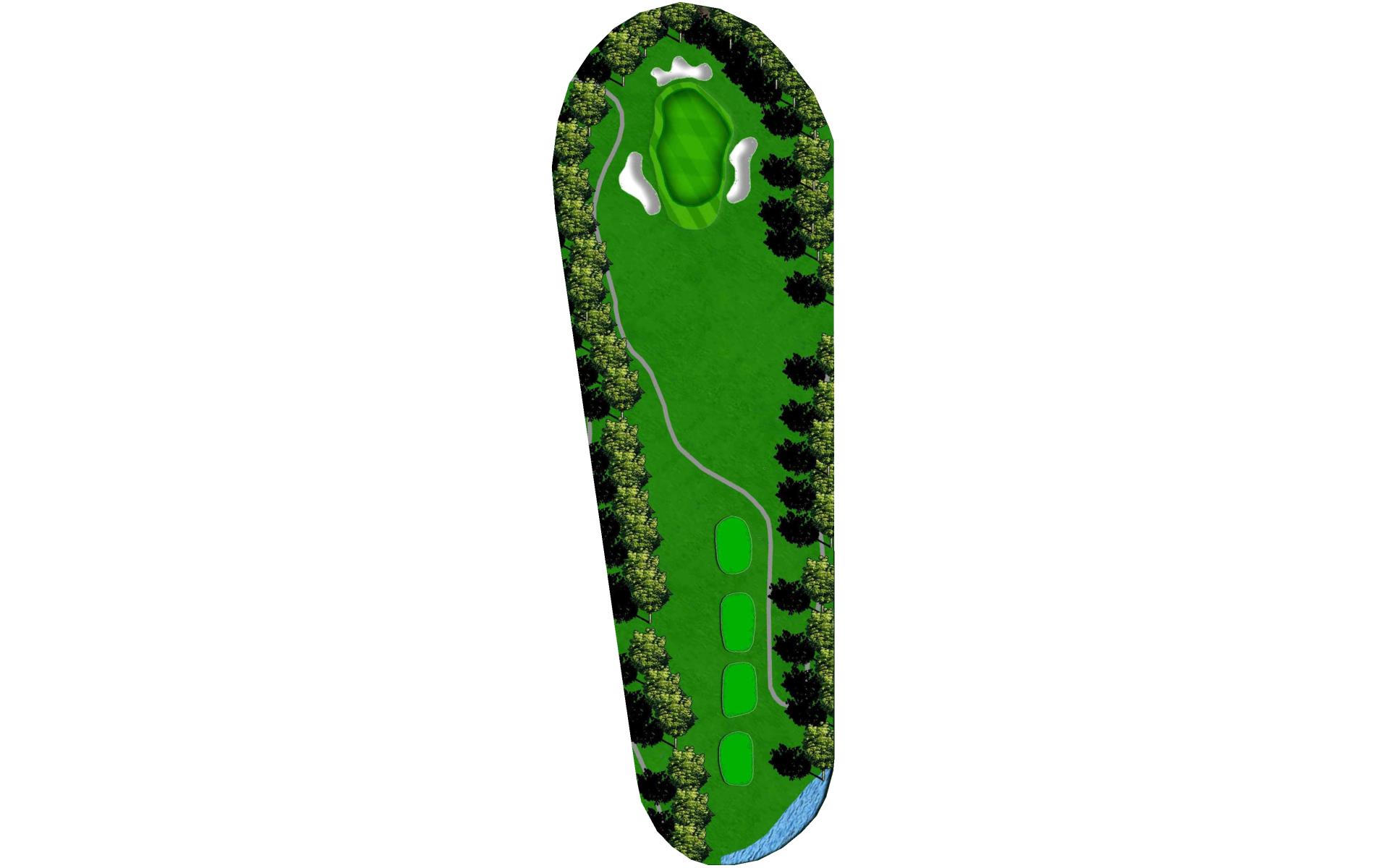 Slight dogleg left. Big green is guarded by bunkers.
