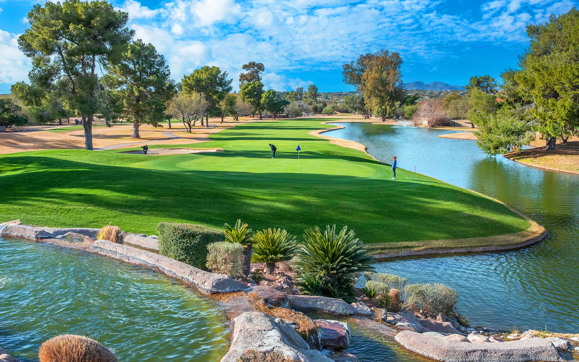 In 2023, Oro Valley Country Club underwent a comprehensive renovation to enhance your golfing experience. The golf course now boasts pristine TifEagle Bermuda grass greens and lush TiffTuff collars, offering unparalleled putting pleasure and elegance to every shot. The meticulous renovation extended to the bunkers, providing strategic challenges on both the course and the practice facilities. Beyond the course, our recent bunker renovation reshaped bunkers on the chipping green to closely mimic the challenges you'll encounter on the course. Additionally, the signature lake on hole 18 was enhanced to ensure its enduring beauty for generations to come, contributing to an elevated and refined golfing experience at Oro Valley Country Club.