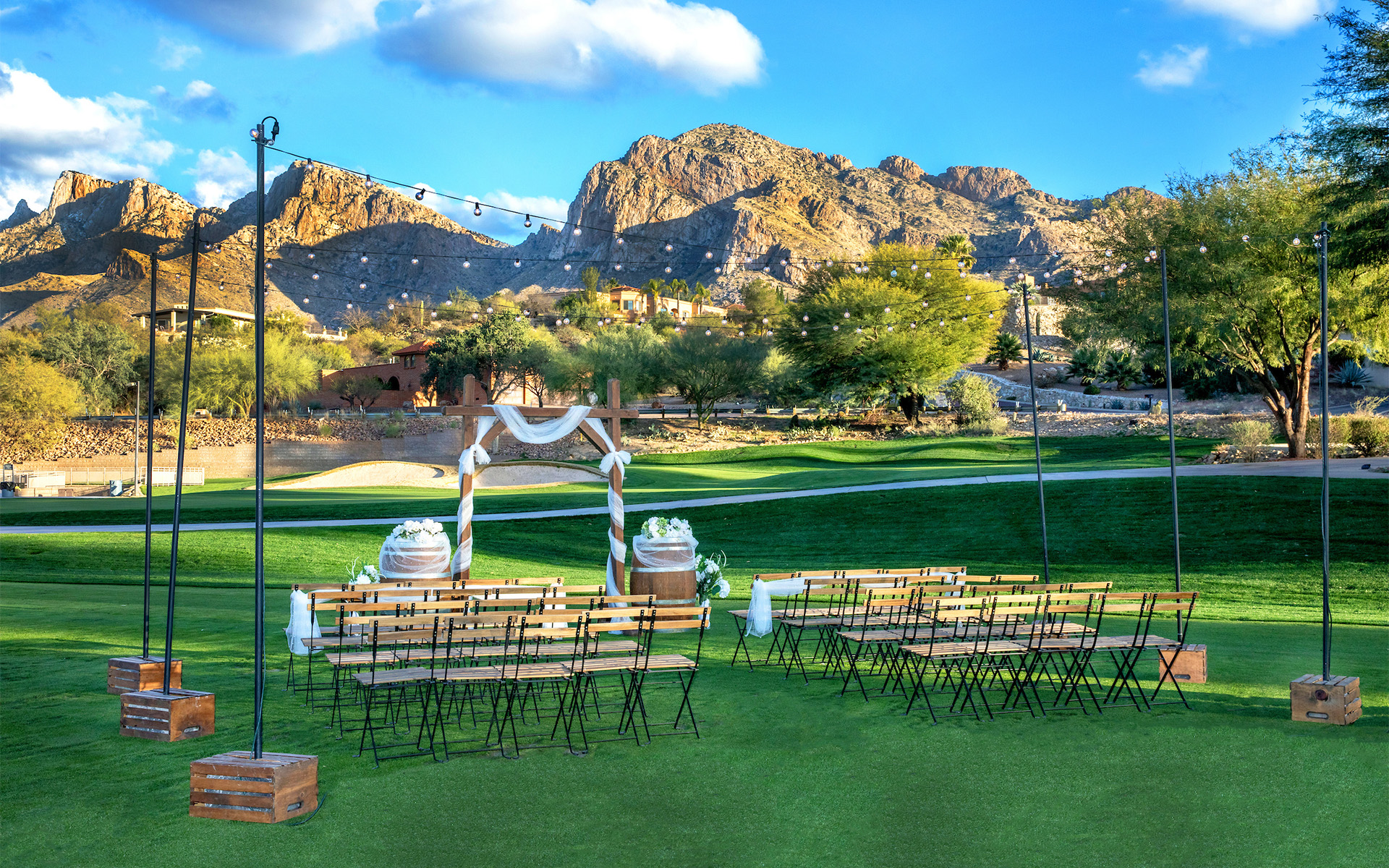 A wedding at Oro Valley Country Club can only be described as magical. The scenic golf view from our clubhouse will enhance your ceremony, while our elegant ballroom hosts your perfect reception. We look forward to sharing your special day with you.