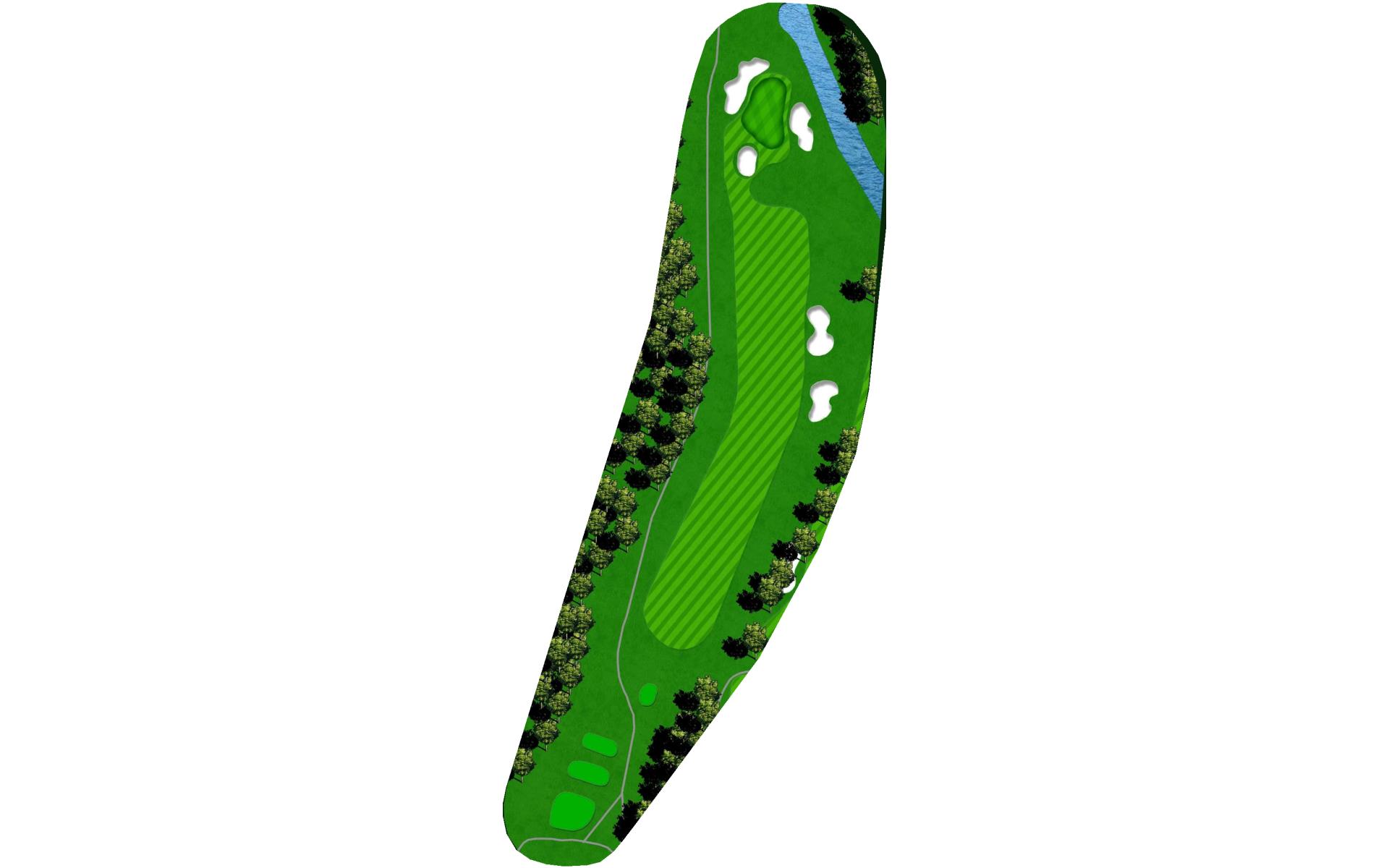 Time for a layup, but you must find the fairway on this hole. Avoid the trees on right and trouble on the left. Approach plays a bit longer than it looks, but make sure you miss it to the left or long to avoid a tough up and down.