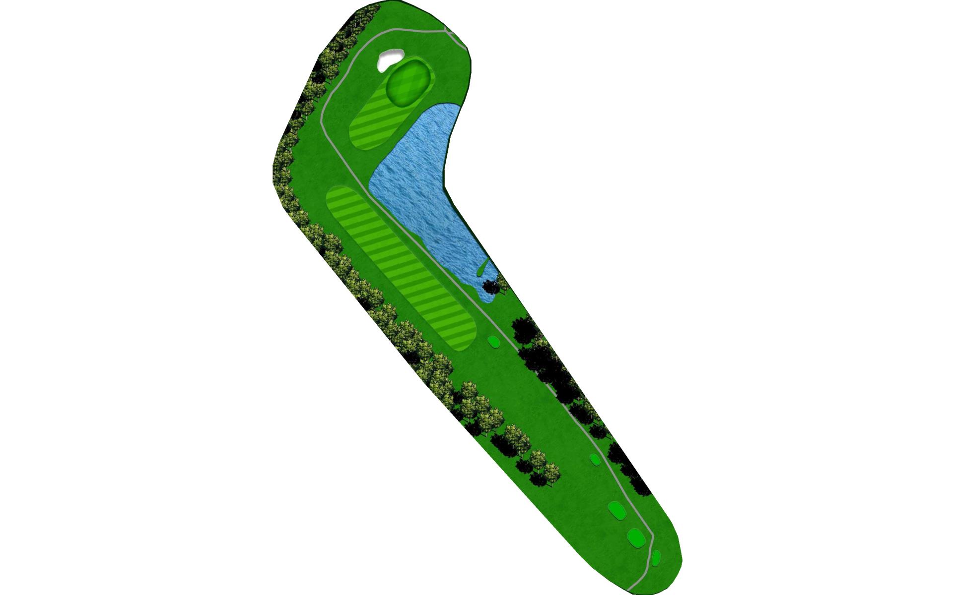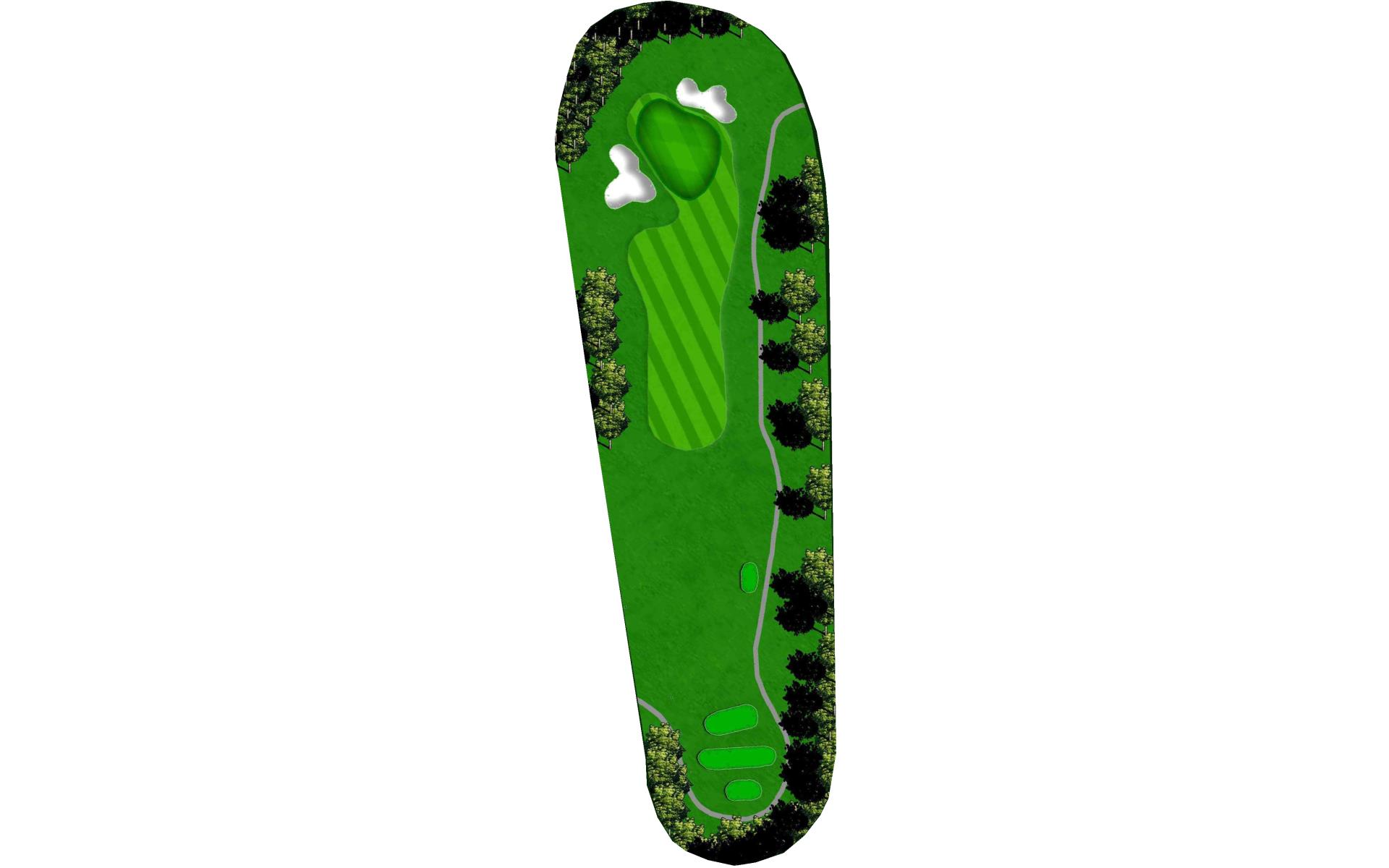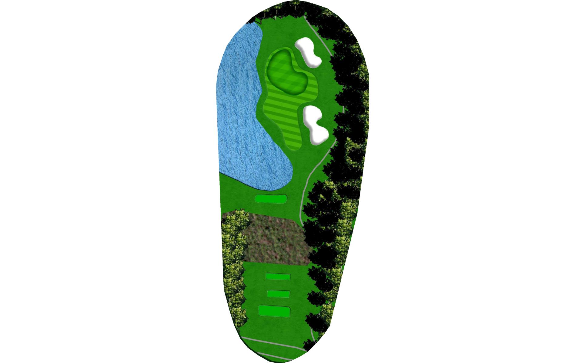 Time for another big drive. Aim away from the pond on the right and keep it out of the trees. Don’t go long on your approach as the trees are close behind the green.