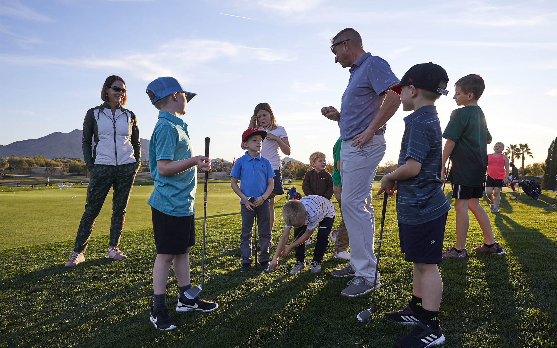Your golfing journey at Seville Golf & Country Club in Gilbert, AZ encompasses a comprehensive golf experience, featuring golf lessons, club fittings, and more. Our Gilbert golf lessons cater to all levels of players, from beginners to scratch golfers, and we provide individual instruction as well as group clinics. Whether you're just starting or looking to fine-tune your skills, our teaching programs are designed to meet your needs. Our "Game On" program provides a fun teaching environment for beginners, and we have options for all levels of instruction. Kids can join the fun with our "Crush It" program and PGA Junior League. Additionally, we provide the option to leverage TrackMan technology for precise club fitting and swing enhancement, ensuring top-quality instruction for every golfer. Explore our instruction and service page to discover how we can elevate your game to the next level.