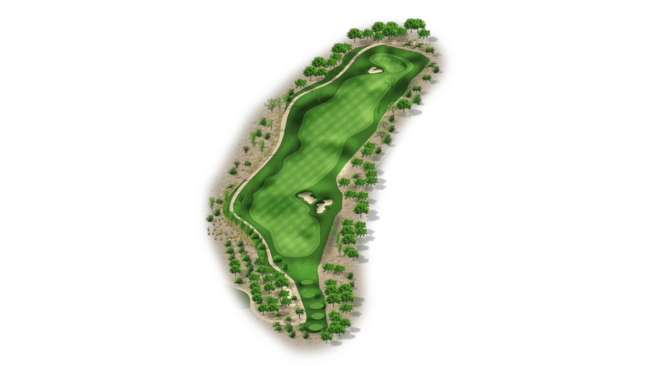 | The fourth hole is the first par 3 on the golf course. Most players will have a mid-to-long iron into this two-tiered green. It’s fairly open, with the exception of a bunker front-left and a desert left of the green. Tee shots that land in the middle of the green will set up a good chance at par. |