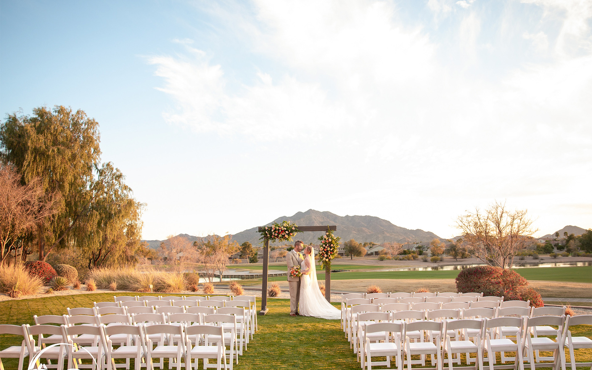 Celebrate a wedding of romantic splendor at our Gilbert reception halls. With picturesque views, magnificent bell towers, grand arching entryways and expansive terraces, our clubhouse is the perfect setting for you to begin a beautiful journey together. Our Cascada Ballroom is spacious and elegant with an illustrious charm that will capture your hearts, leaving you and your loved ones with the memory of a magical celebration.