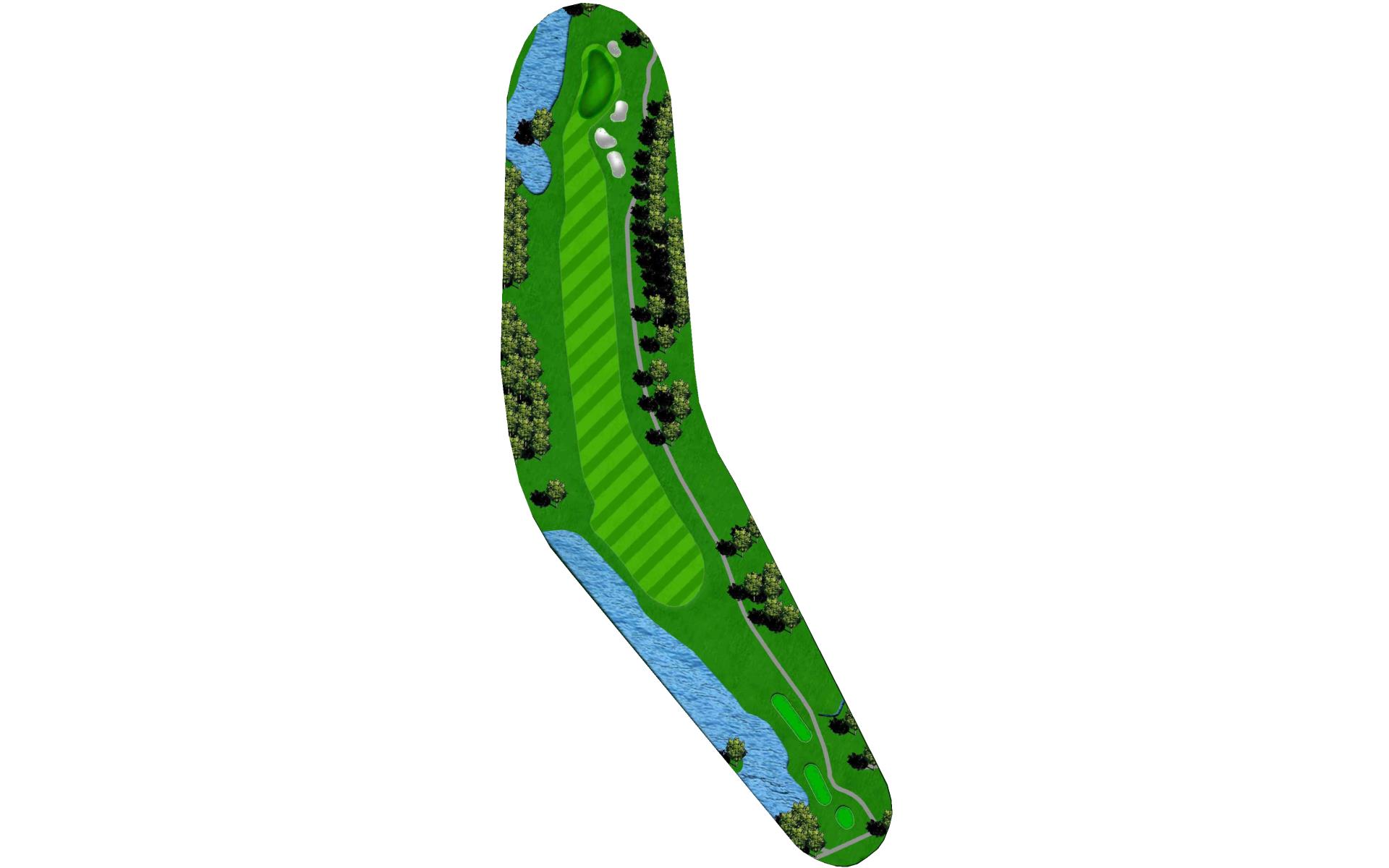 Par 4 that gently doglegs right. A long fairway bunker down the right side of the fairway discourages players from attempting to cut off the dogleg. A narrow green protected by bunkers requires a shot with precise distance control.