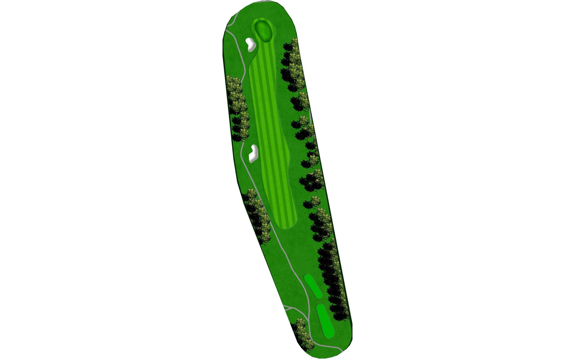 Par 4 with trees that narrow the fairway right where most golfers would land their tee shots. The hole runs straight though and once in the fairway a straightforward approach awaits.