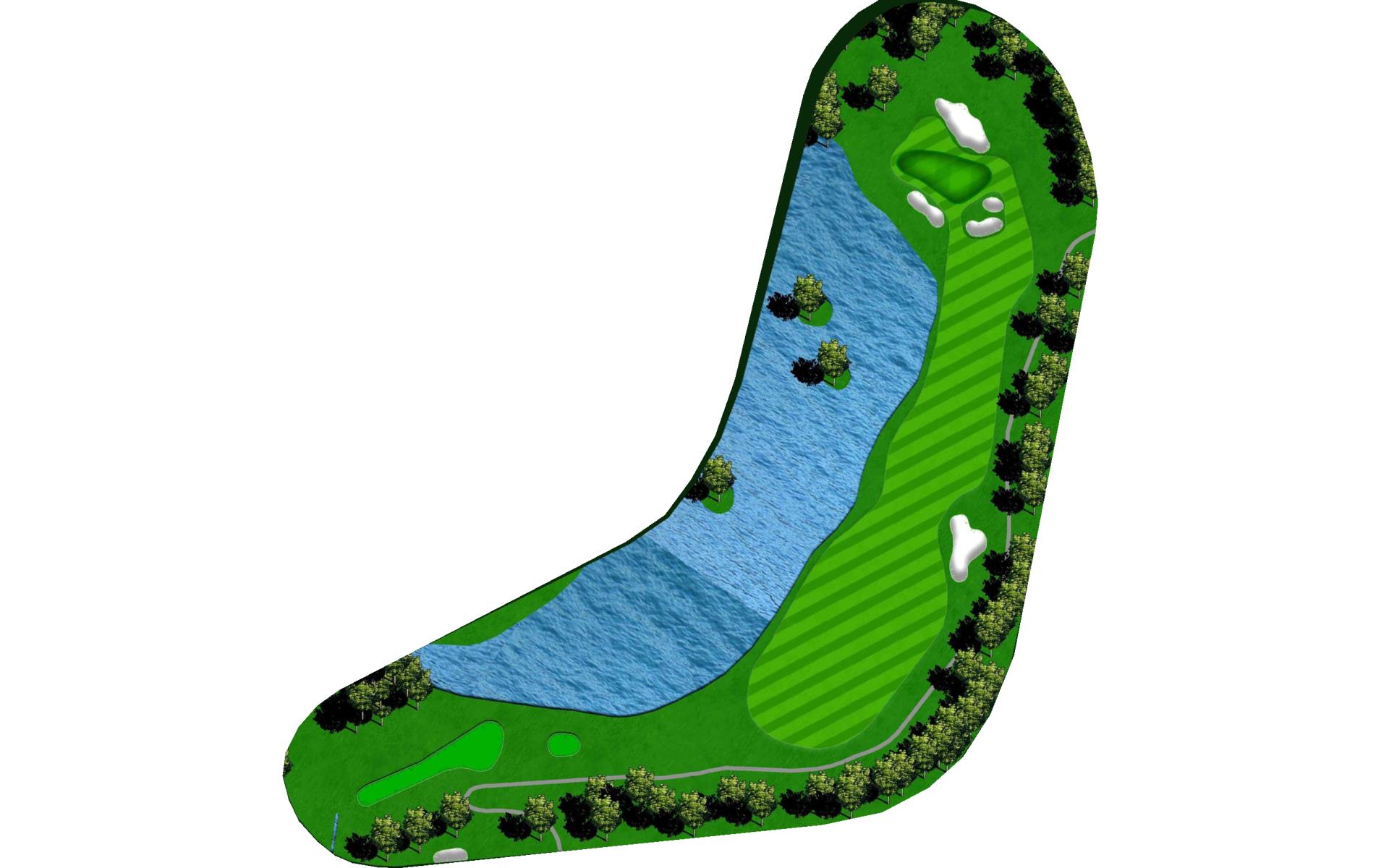 Par 4 with water all down the left and a strategically placed bunker on the right. The fairway narrows significantly after the fairway bunker.