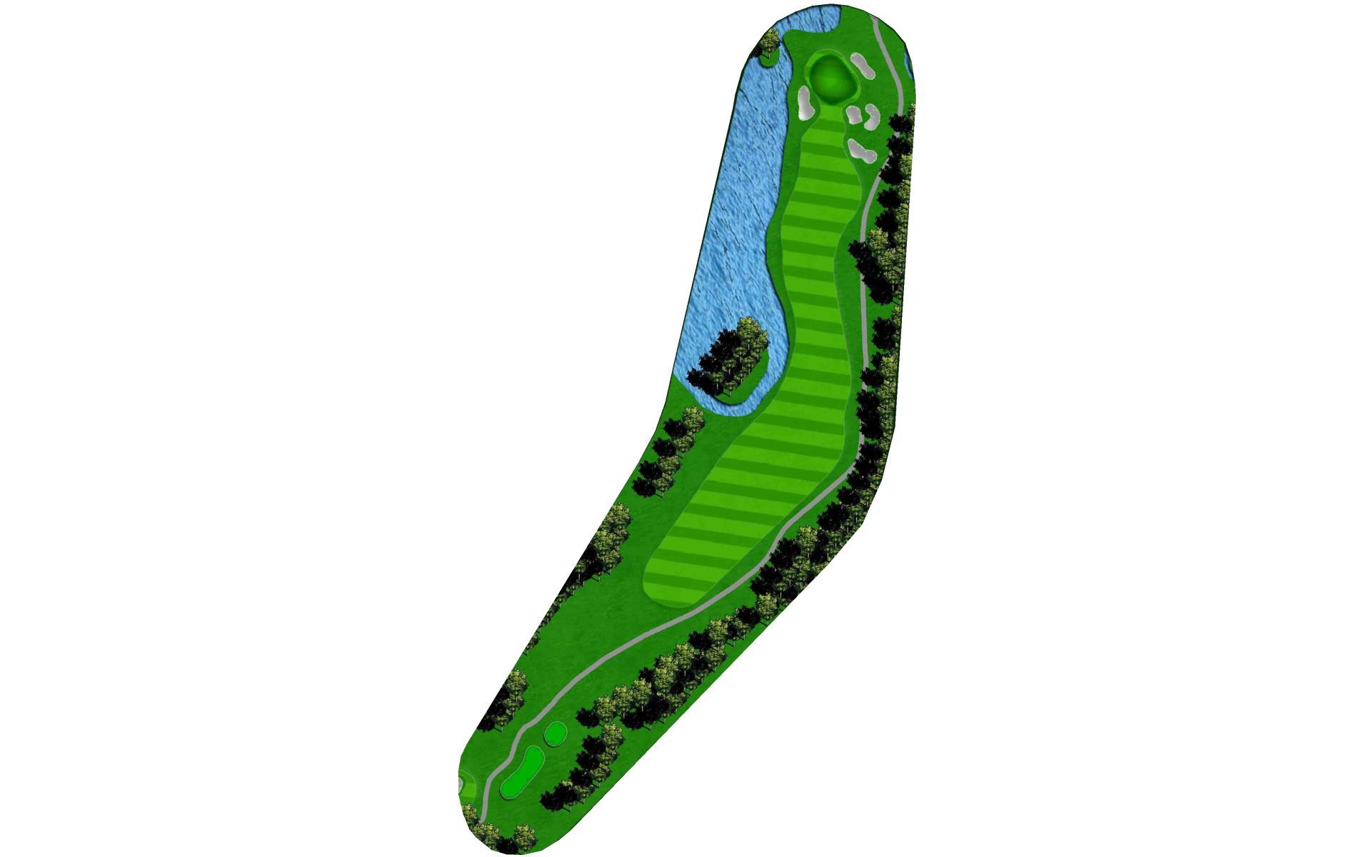 On a course filled with demanding tee shots this Par 4 is no different. A slight dogleg left with a big pond down the left forces players to either risk the water off the tee or accept a long approach to a green surrounded by bunkers and water left.