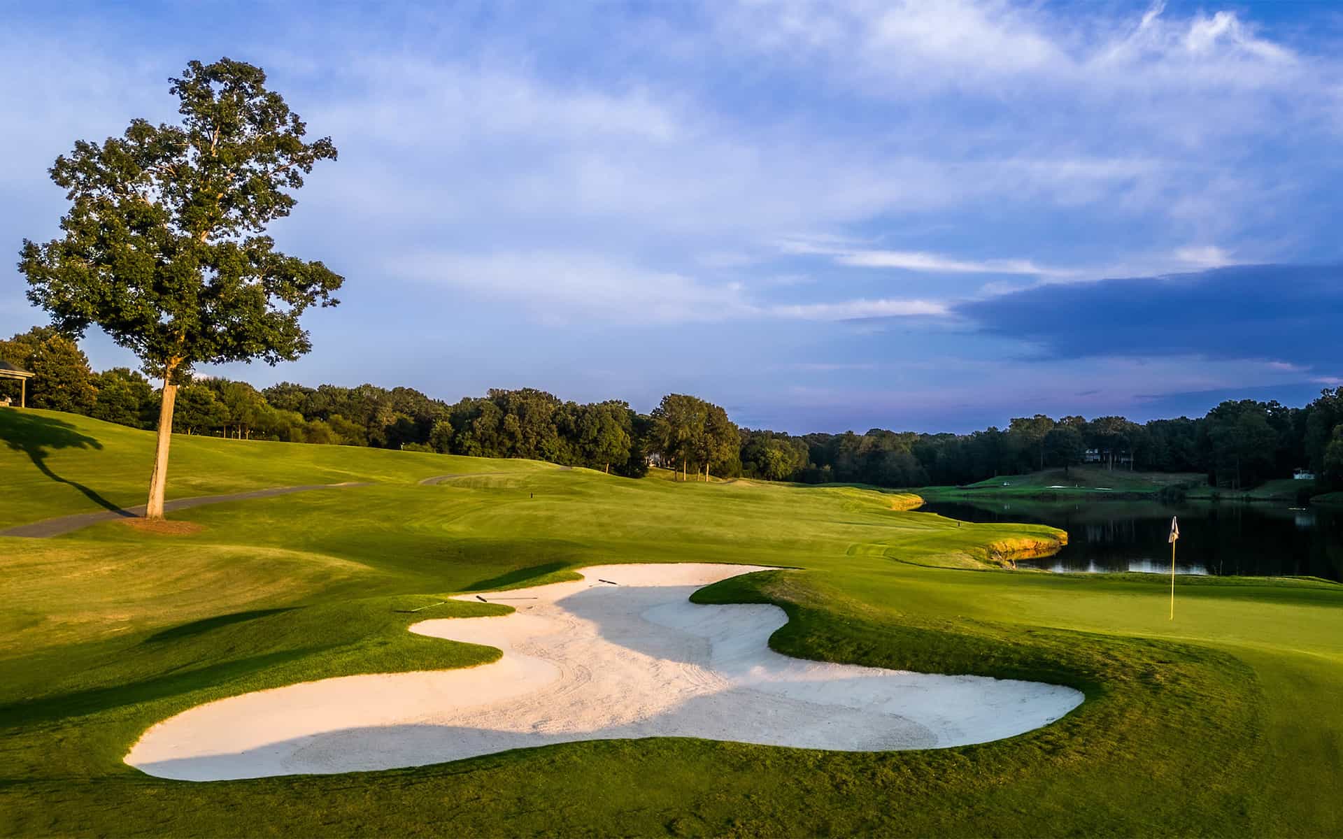 Golf legend Arnold Palmer designed TPC Piper Glen with a unique combination of beauty, challenge and pure playability. Situated in the historic city of Charlotte, the stunning layout brings out the best of the rolling North Carolina terrain – with natural rock outcroppings, lush oak trees and quiet lake inlets.