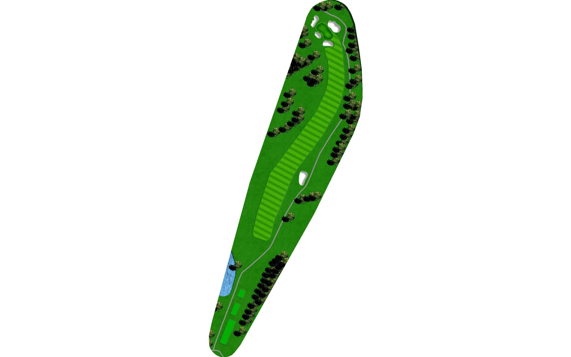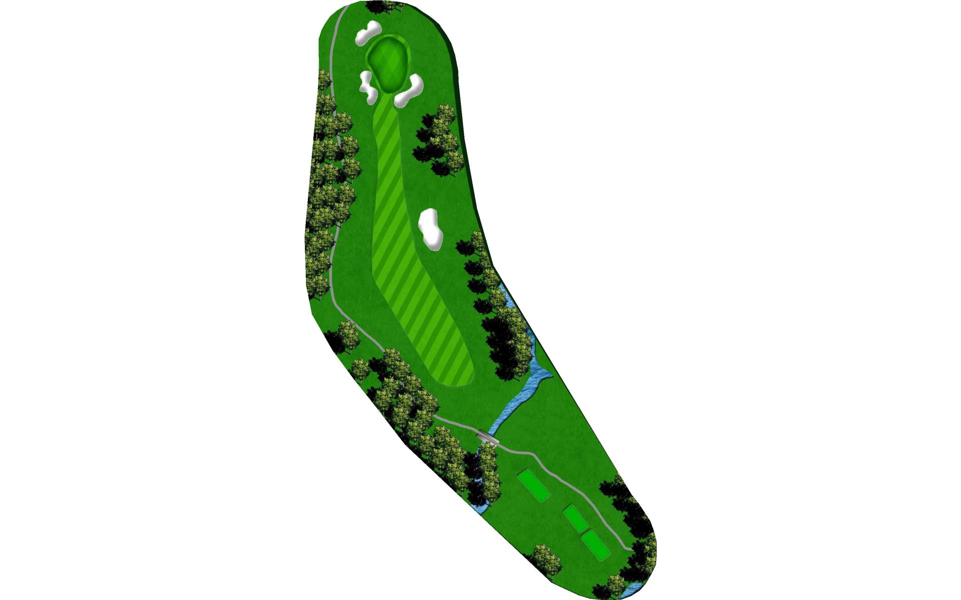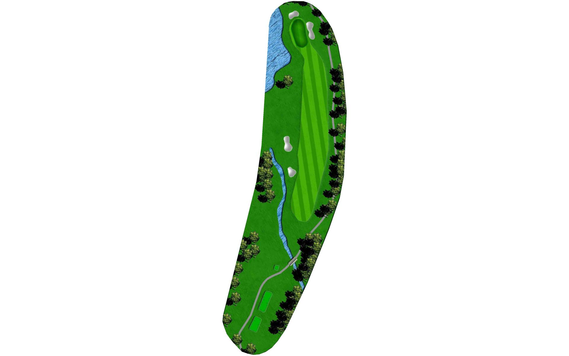 This is a fun par 4 with a creek that cuts across the fairway. Depending on the players ability, opting for a 3-wood or long iron off the tee may be in your best interest to avoid the penalty area. Off the tee, left has more room for the ball to stay dry. Best to go for the center of the green on your approach shot, as water on the left and bunkers on the right can make for a small target!