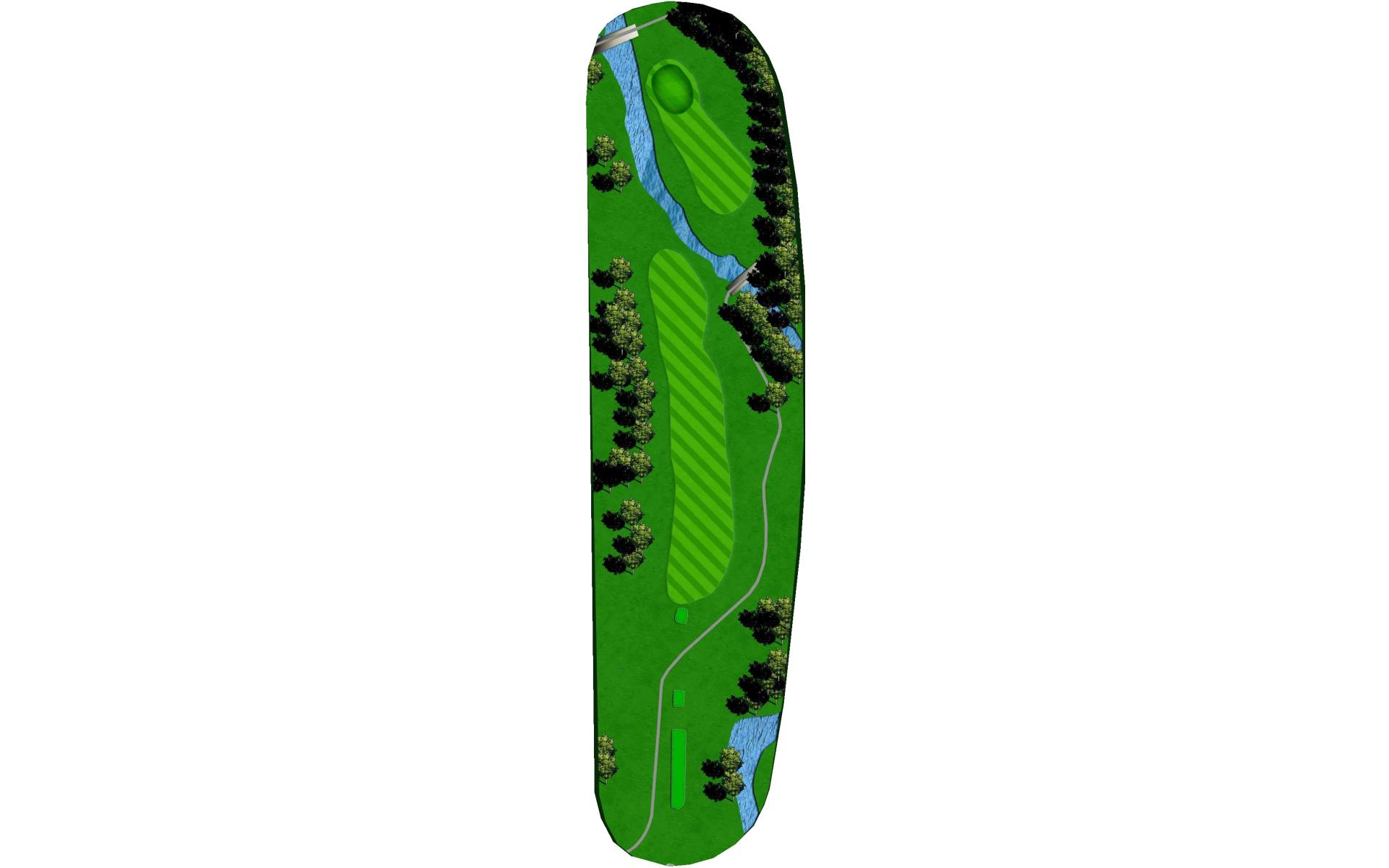 A generous fairway from the tee, then narrows for the second shot, stay left to avoid the creek and the trees. Approach shot will be to an elevated green. Keep the ball below the hole on this sever back-to-front sloping green.