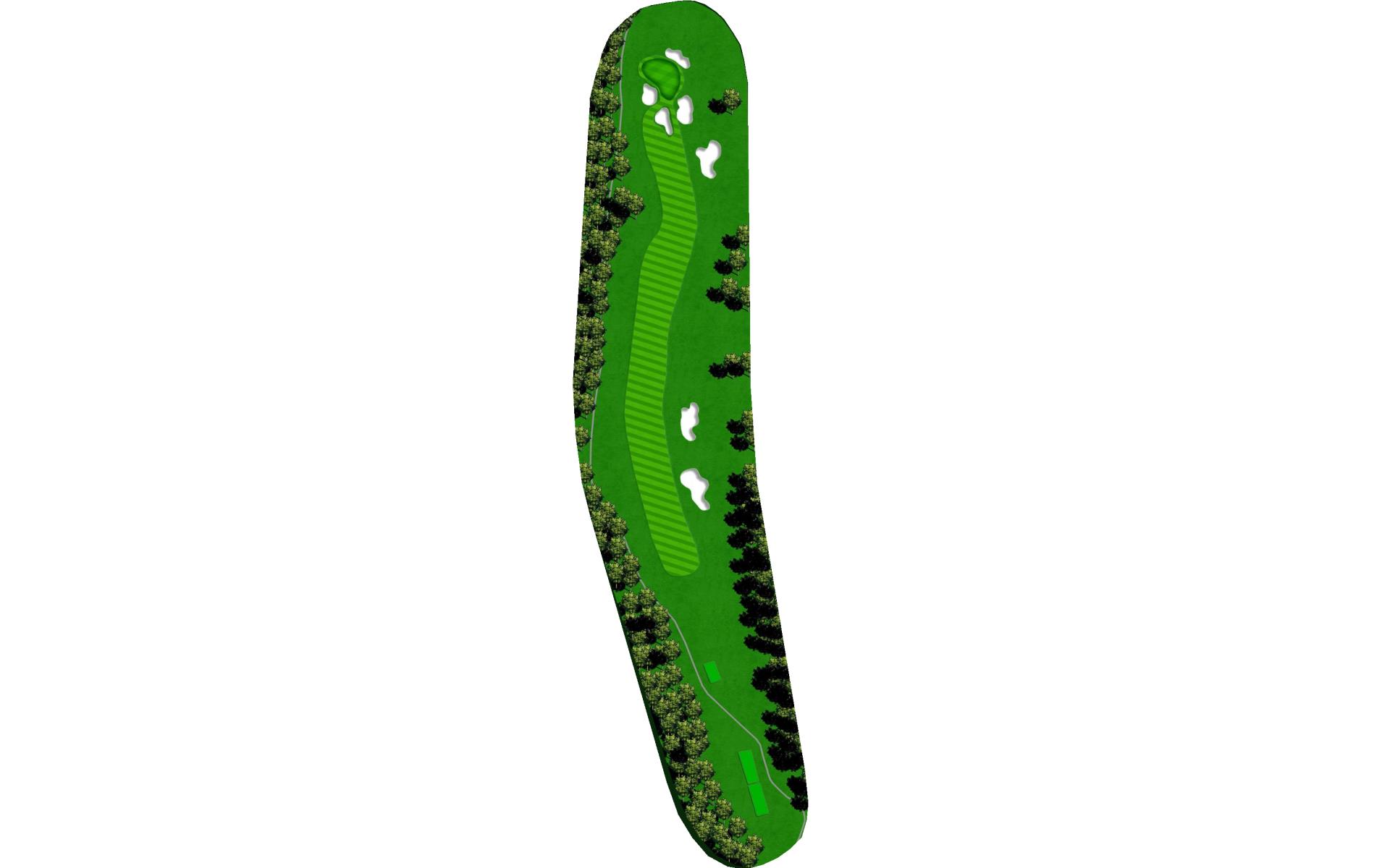 This gentle, uphill dogleg right hole can be very deceptive. This hole requires a well thought out tee shot that is long enough to leave a short iron approach, but at the same time not so long that the player drives the ball through the fairway at the bend and finds their ball behind the trees to the left. Staying below the flag stick is a huge advantage to successfully exiting this green with a two putt.