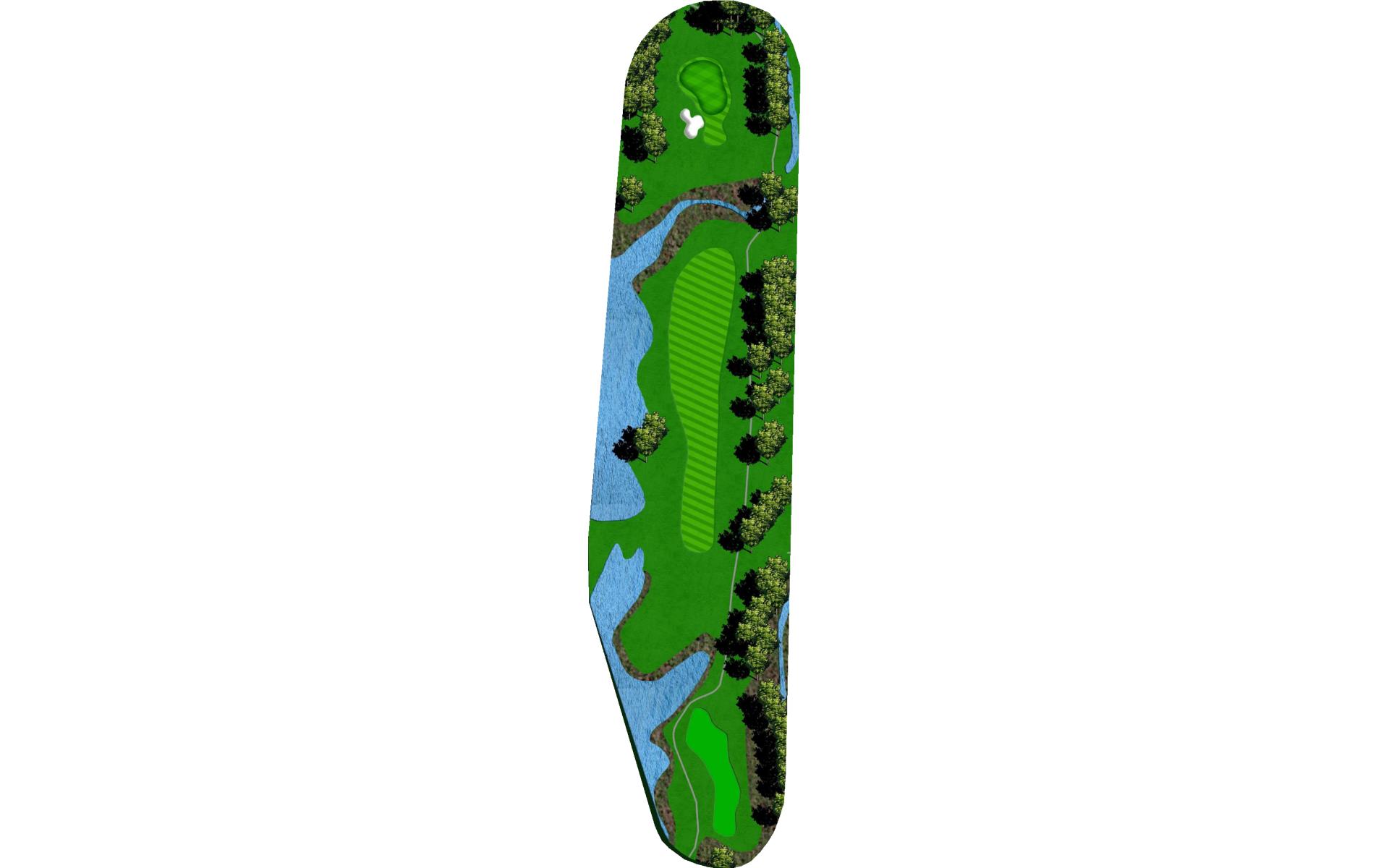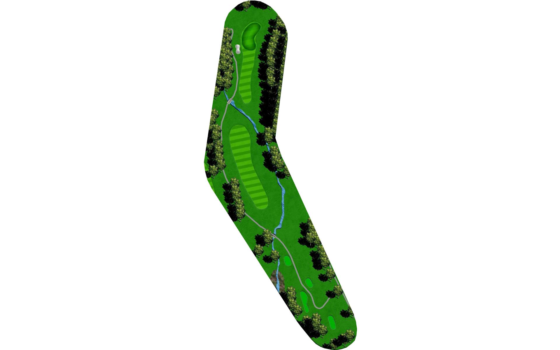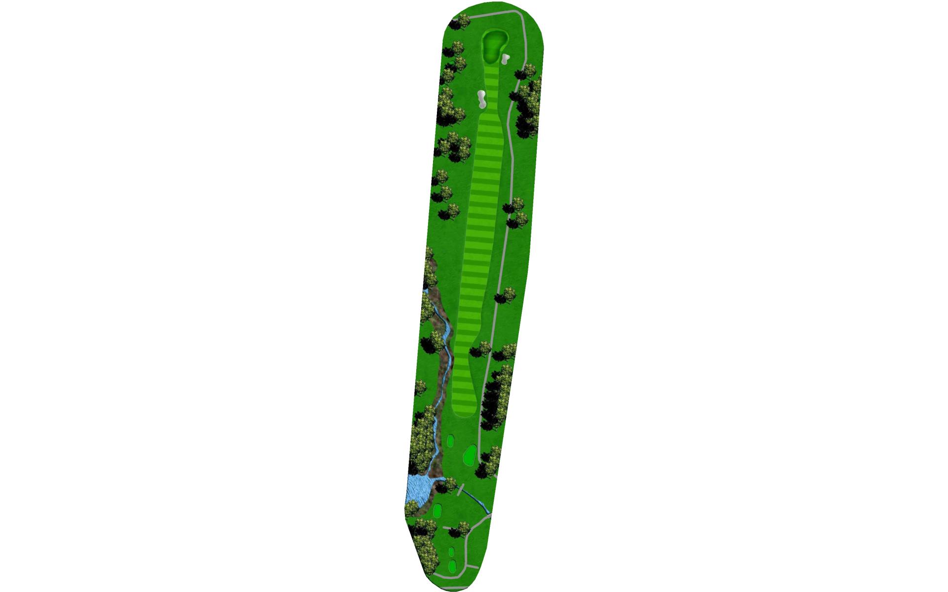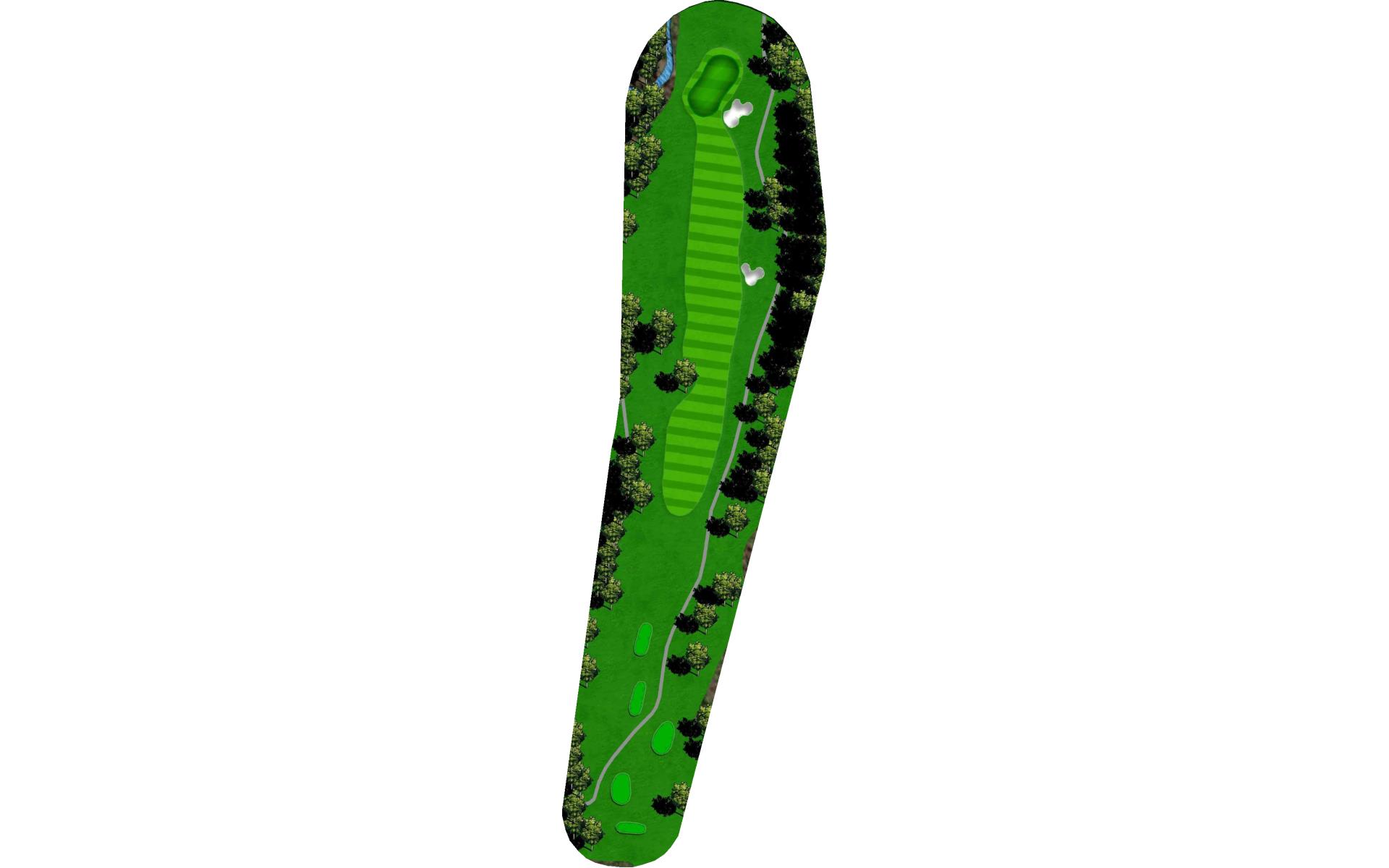 Tee shot placement is more important than length. Avoid the pond on the left and the creek on the right. The goal is to use a short iron into this green.