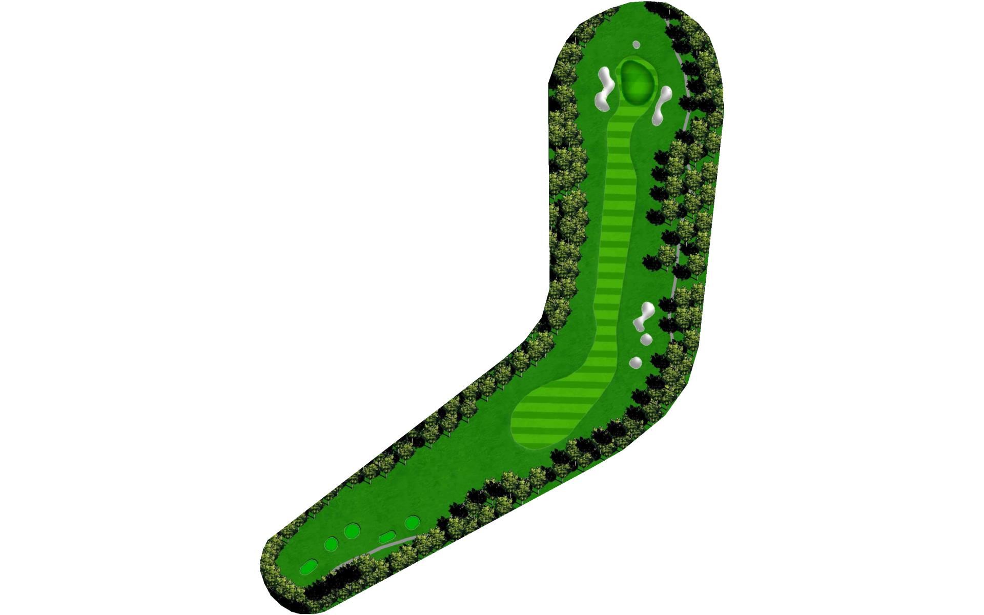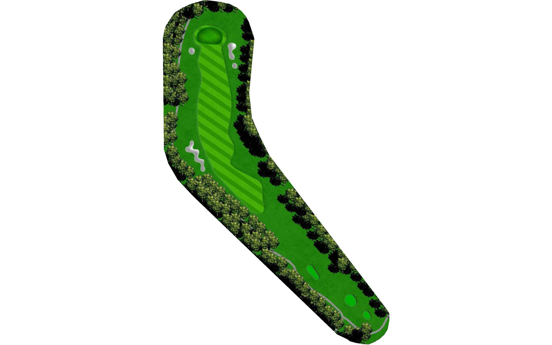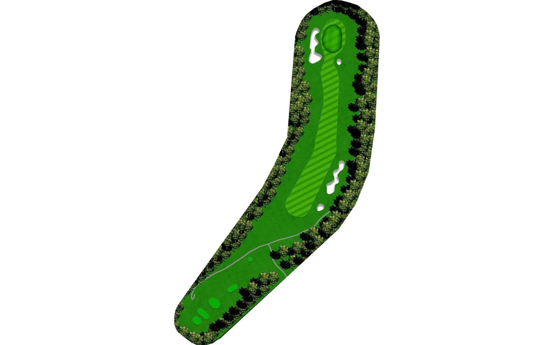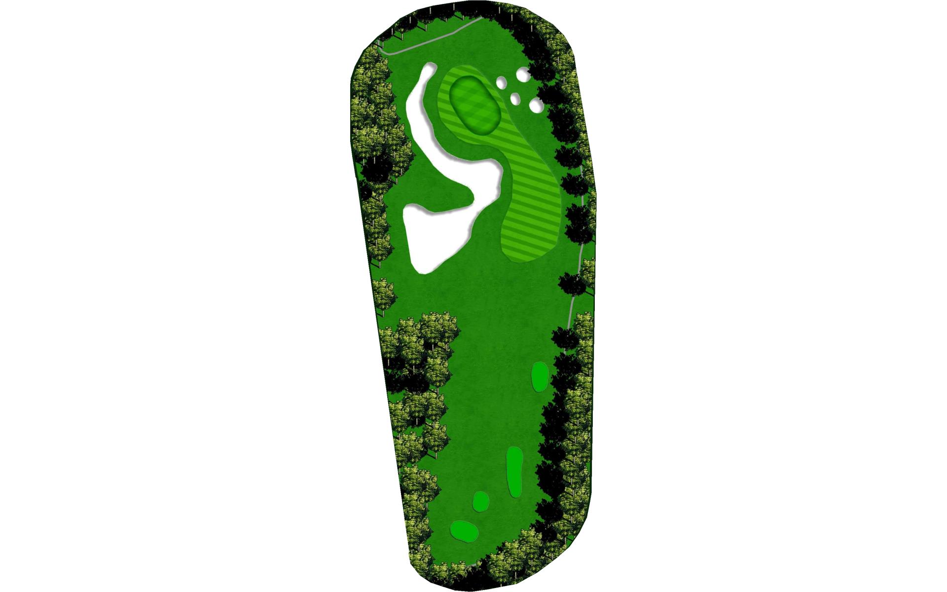 The last of the par 5s requires a good drive down the left center to have any chance at reaching it in two. The best way to approach this hole is to plan for a 3 shot routine. A good layup will leave a short wedge shot into a sloped green. The green is well protected with bunkers, but there is plenty of green to work with.